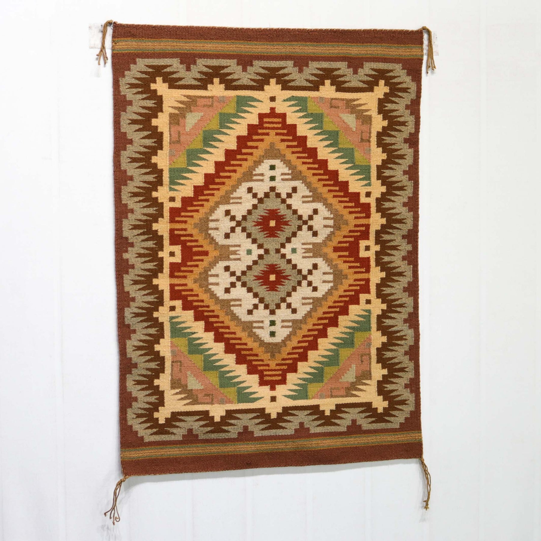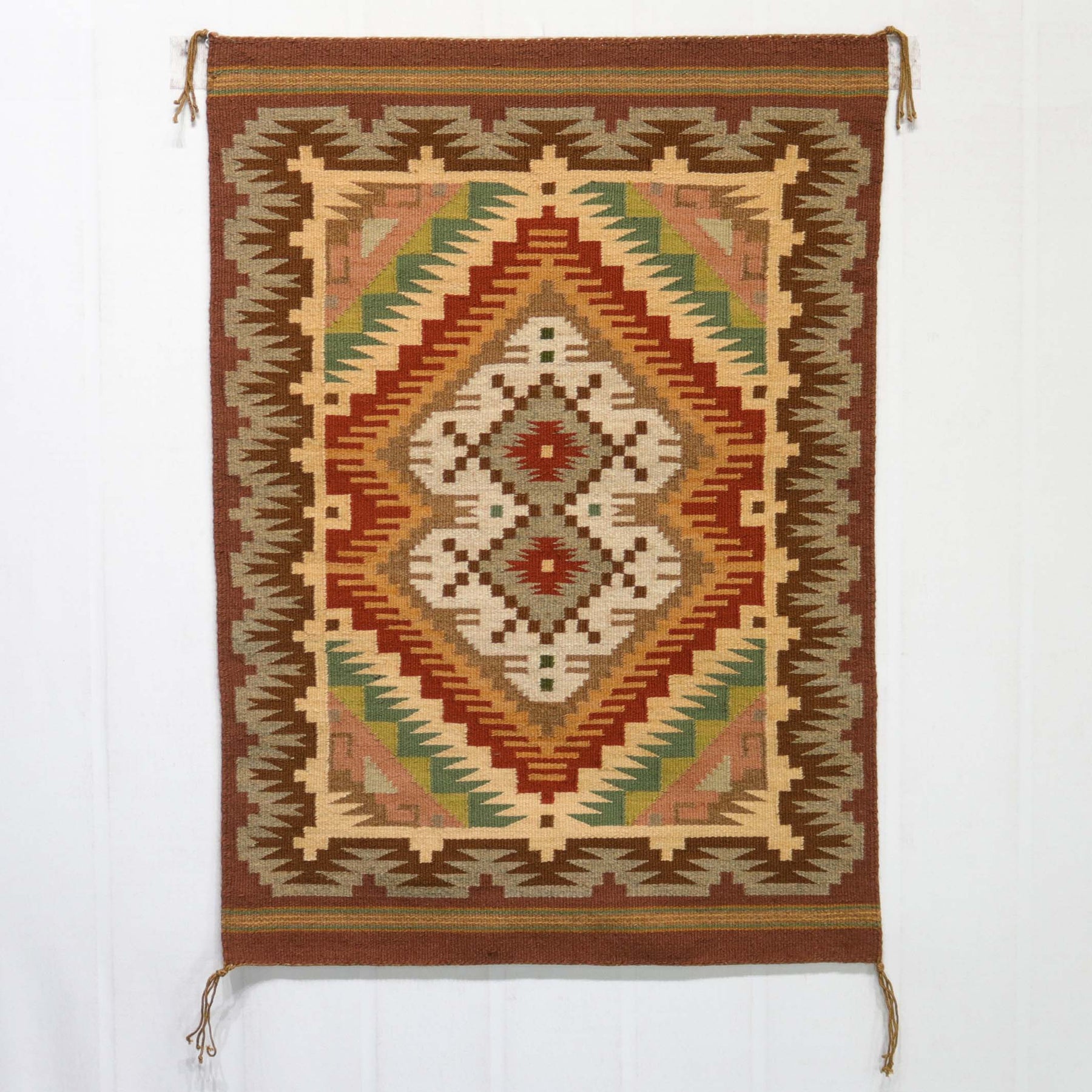 Handwoven Navajo Burntwater Weaving with Warm Vegetal Dyes.