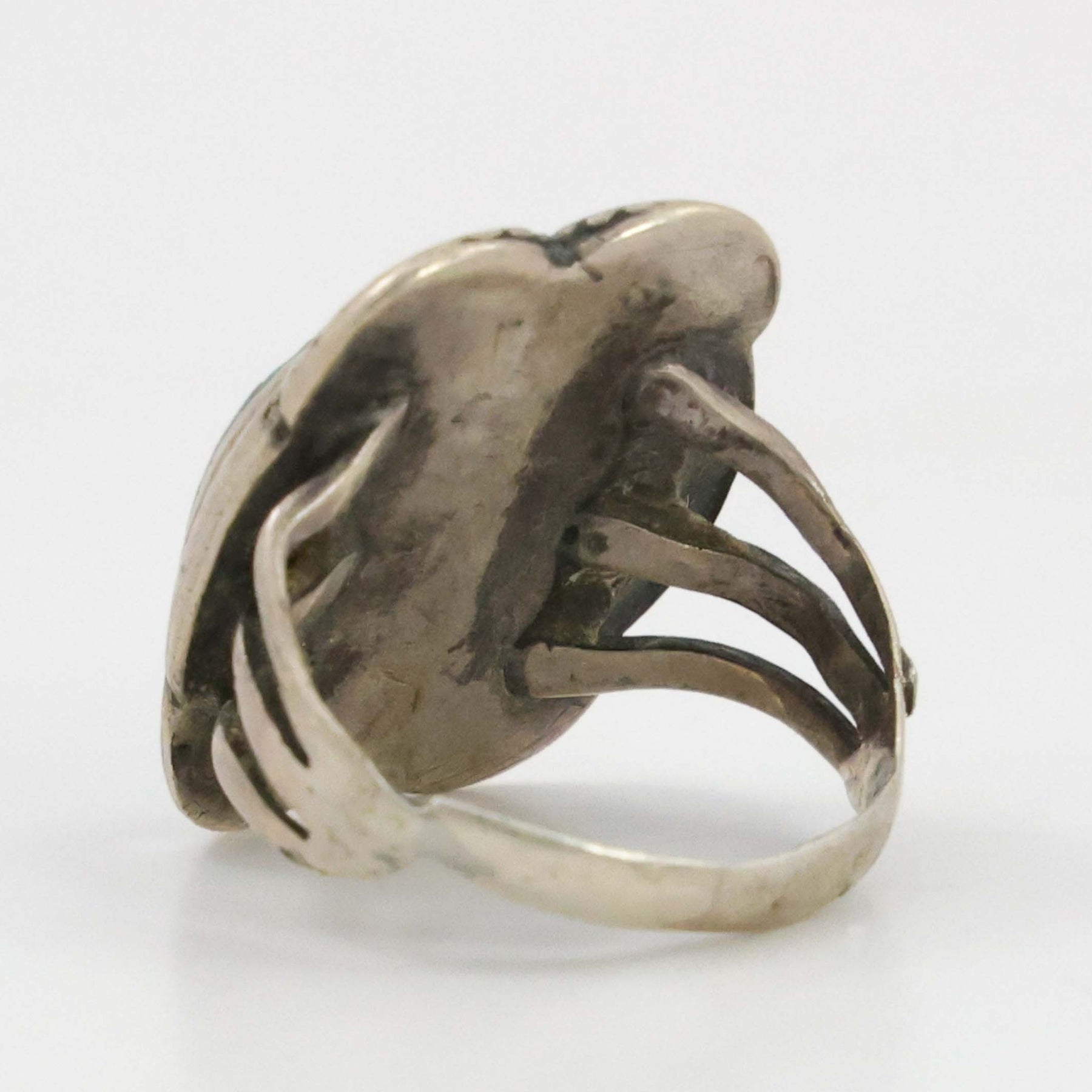 1930s Navajo Sterling Silver Split Band Ring set with Natural American Turquoise.