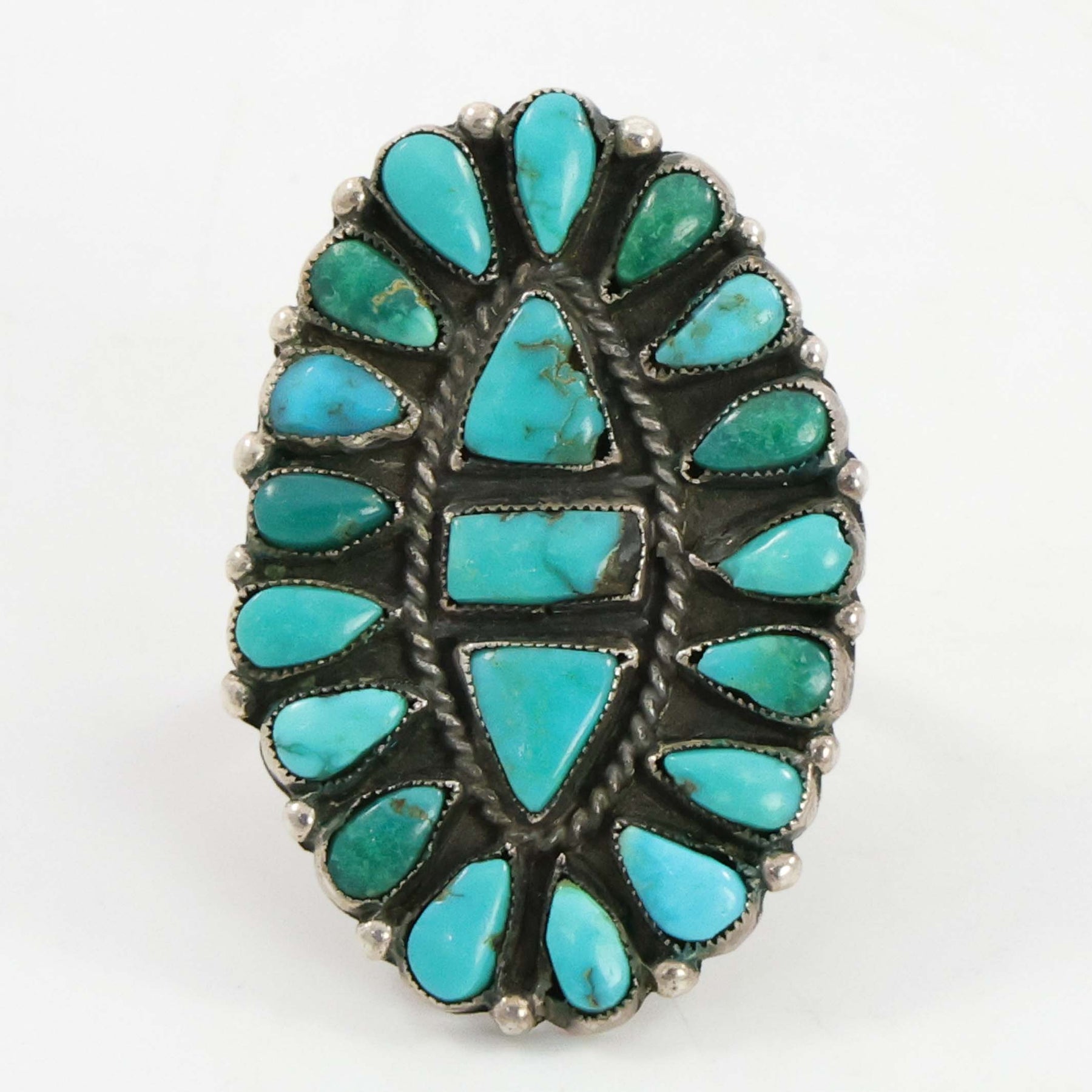 1940s Zuni Sterling Silver Ring set with a Cluster of Natural American Turquoise.