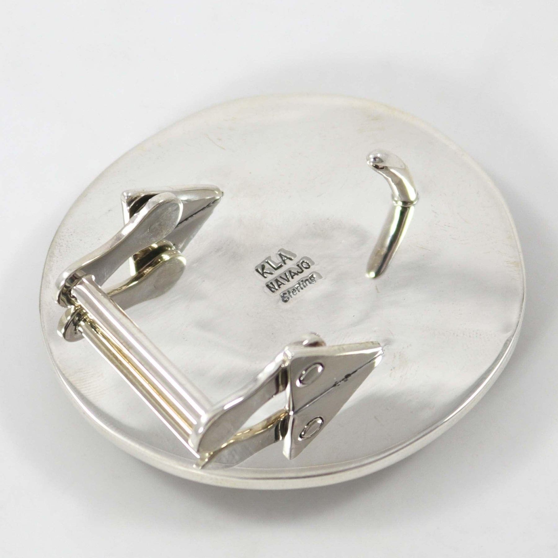 Sterling Silver Western Style Belt Buckle with Navajo Overlaid Designs and set with Natural Egyptian Turquoise.