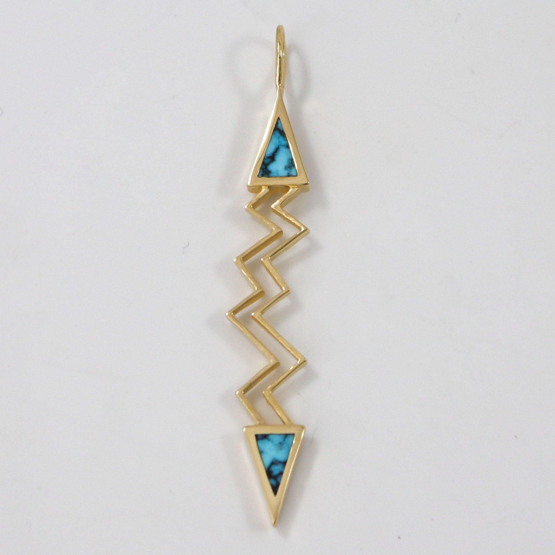 14k Gold Lightning Pendant set with Natural Turquoise.