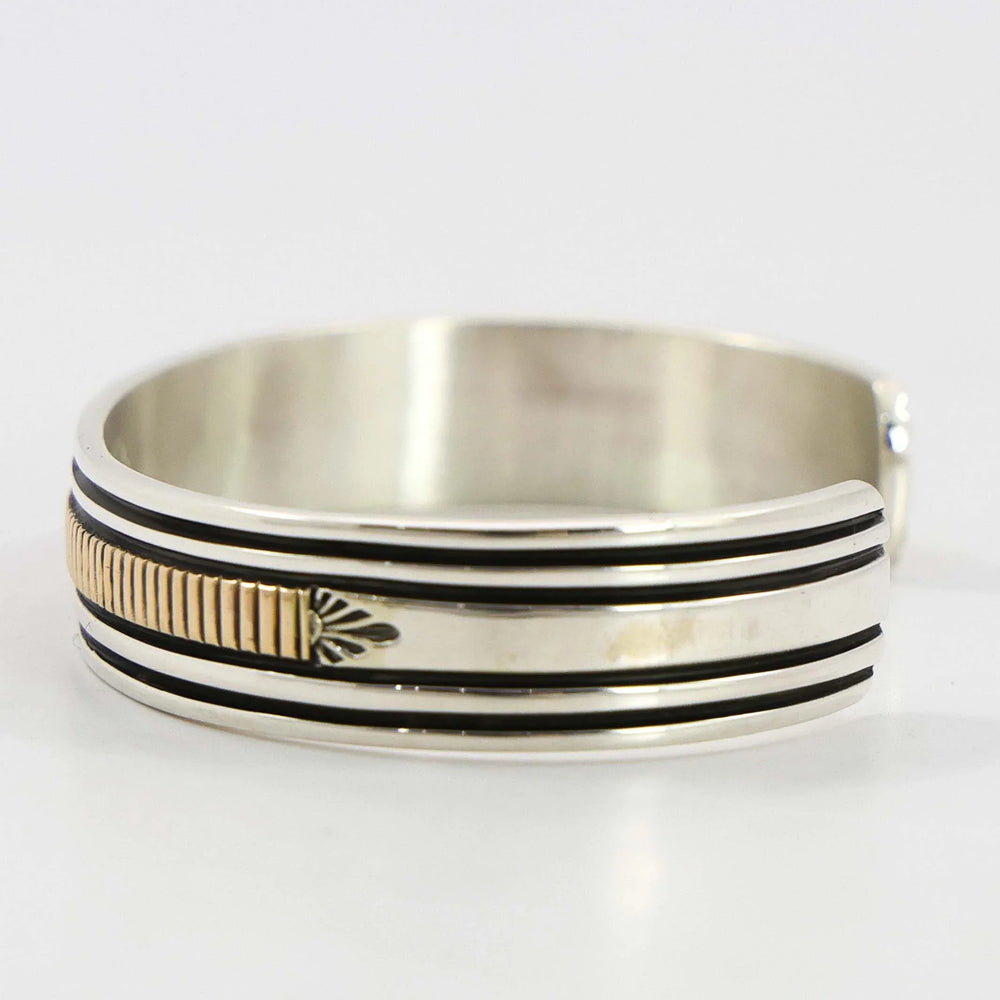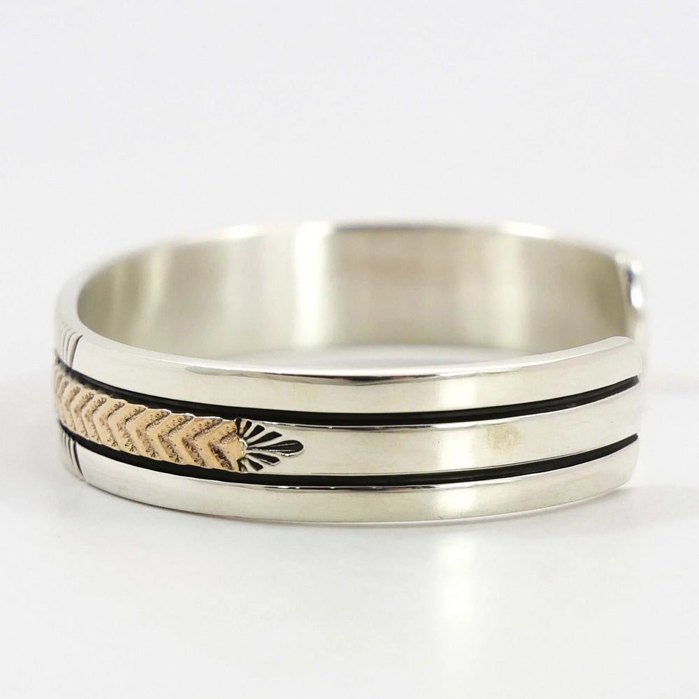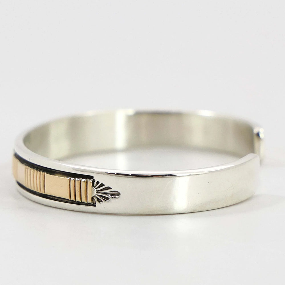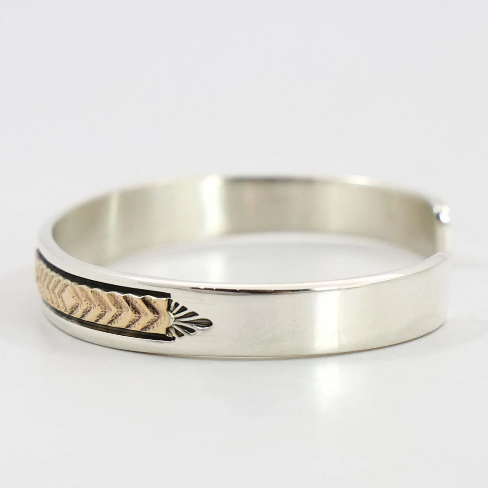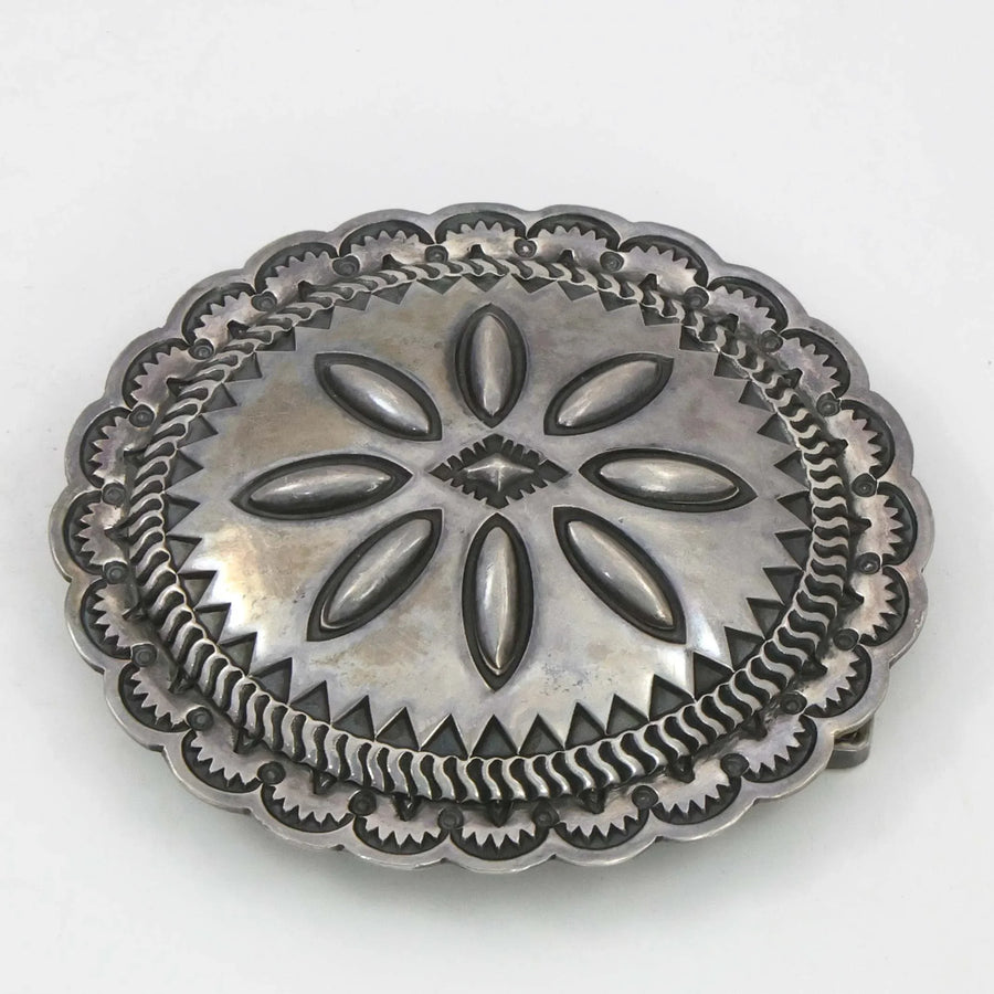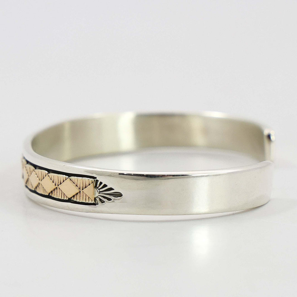 To create stamped silverwork, a sheet of silver is cut into the desired shape and placed on a steel bench block. The artist then lines up the stamp and makes the impression with a single strike of a hammer. Most stamps are small and it can take many hammer strikes to complete a finished design. Once the stamp work is completed the piece may be oxidized with the protruding silver polished. This creates a more dramatic contrast within the stamped designs. The piece is then heated up and carefully molded into its final shape as a beautiful piece of stamped silver jewelry.