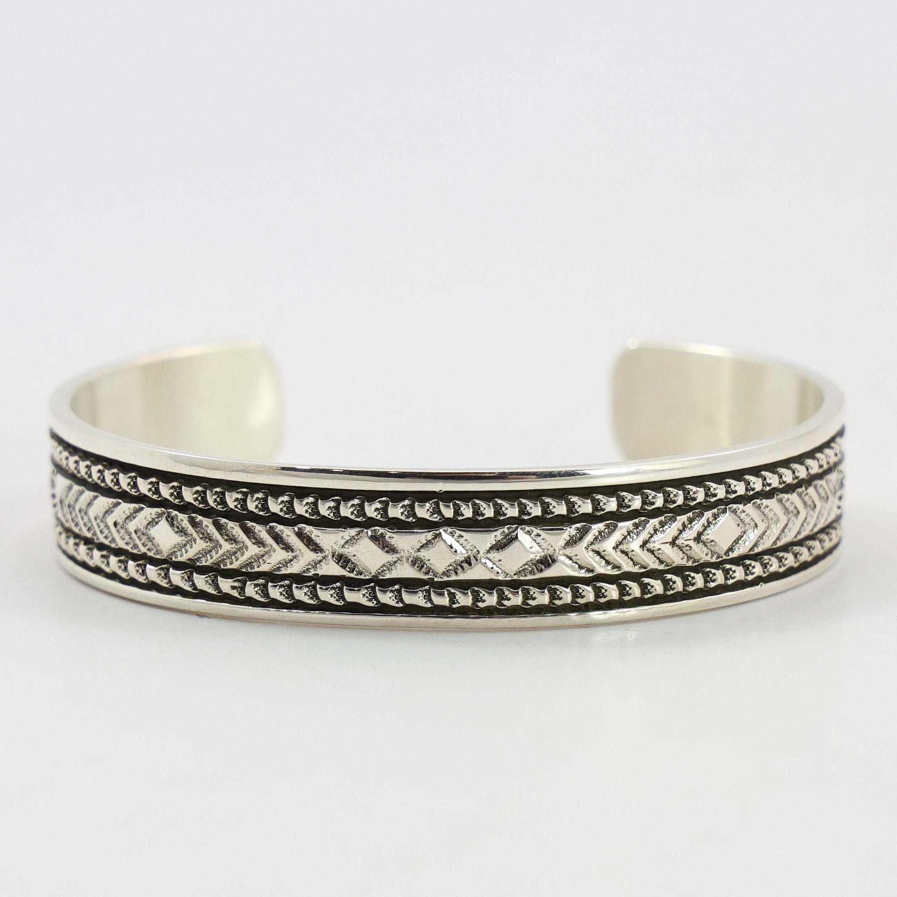 Sterling Silver Cuff Bracelet with Hand-Stamped Designs.