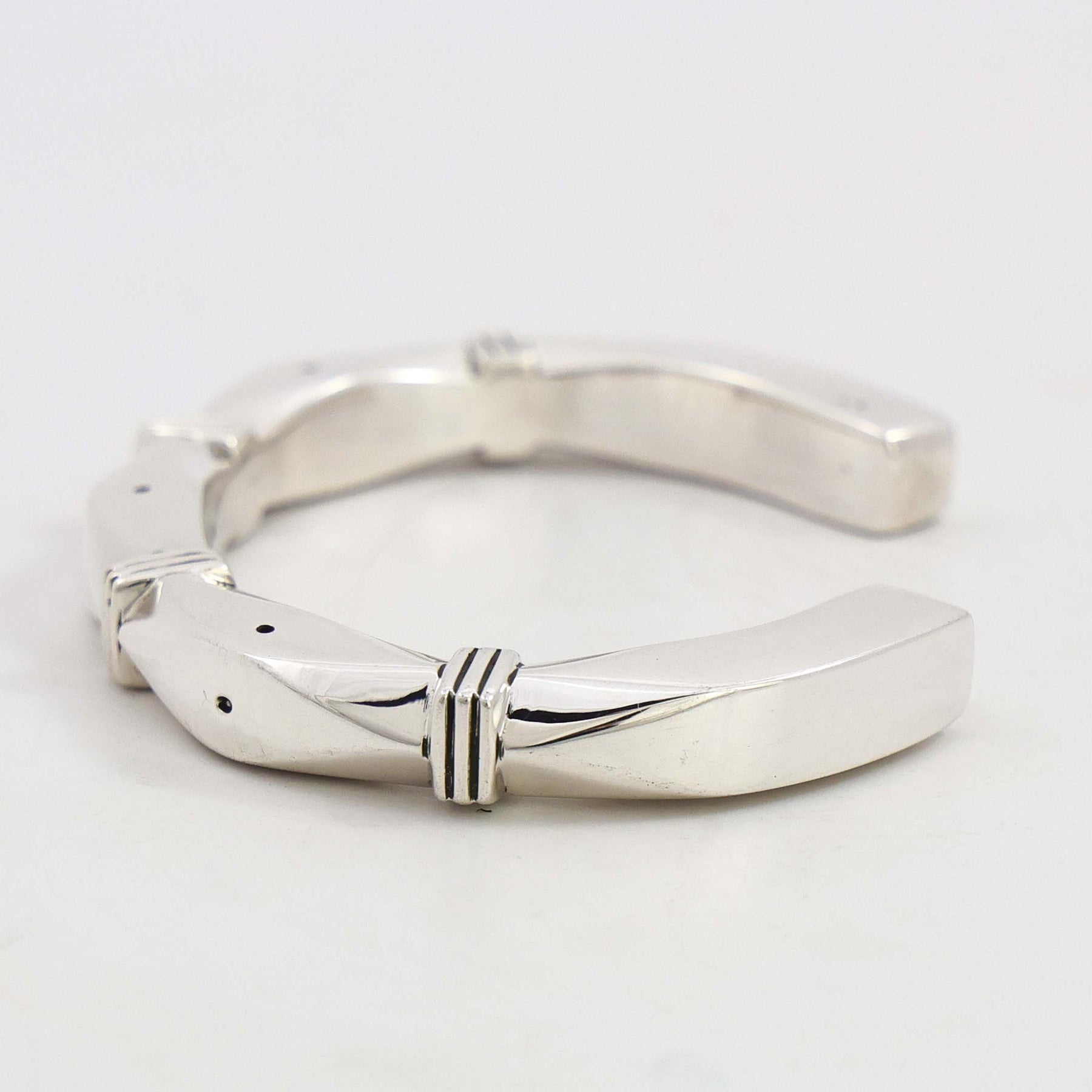 Heavy Gauge Sterling Silver Cuff Bracelet with Hand-Stamped and Filed Designs.