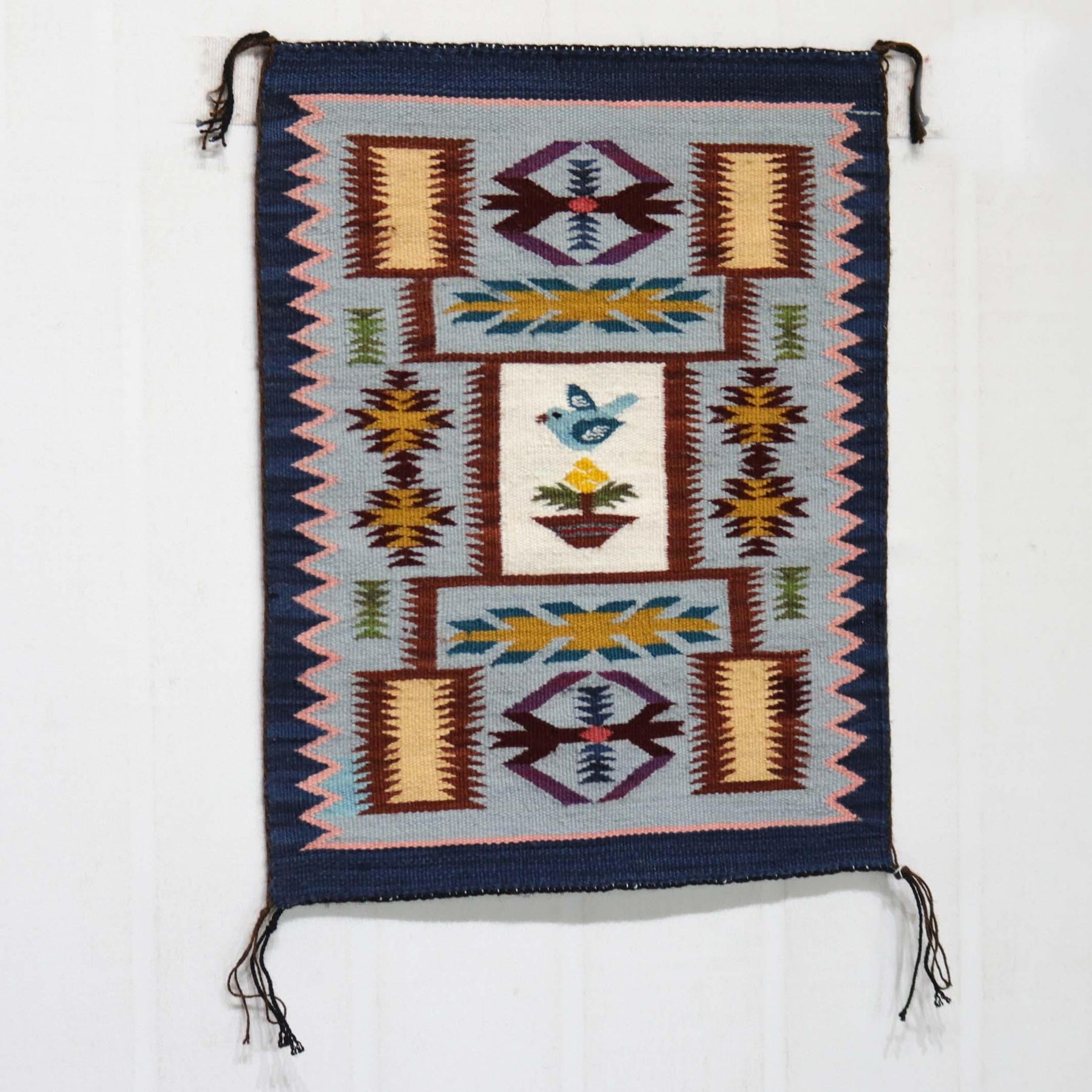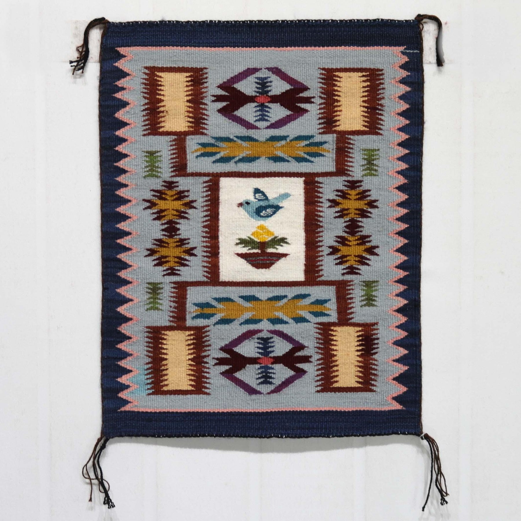 Storm Pattern Weaving with a Bird and Flower at the Center by Bruce Nez.