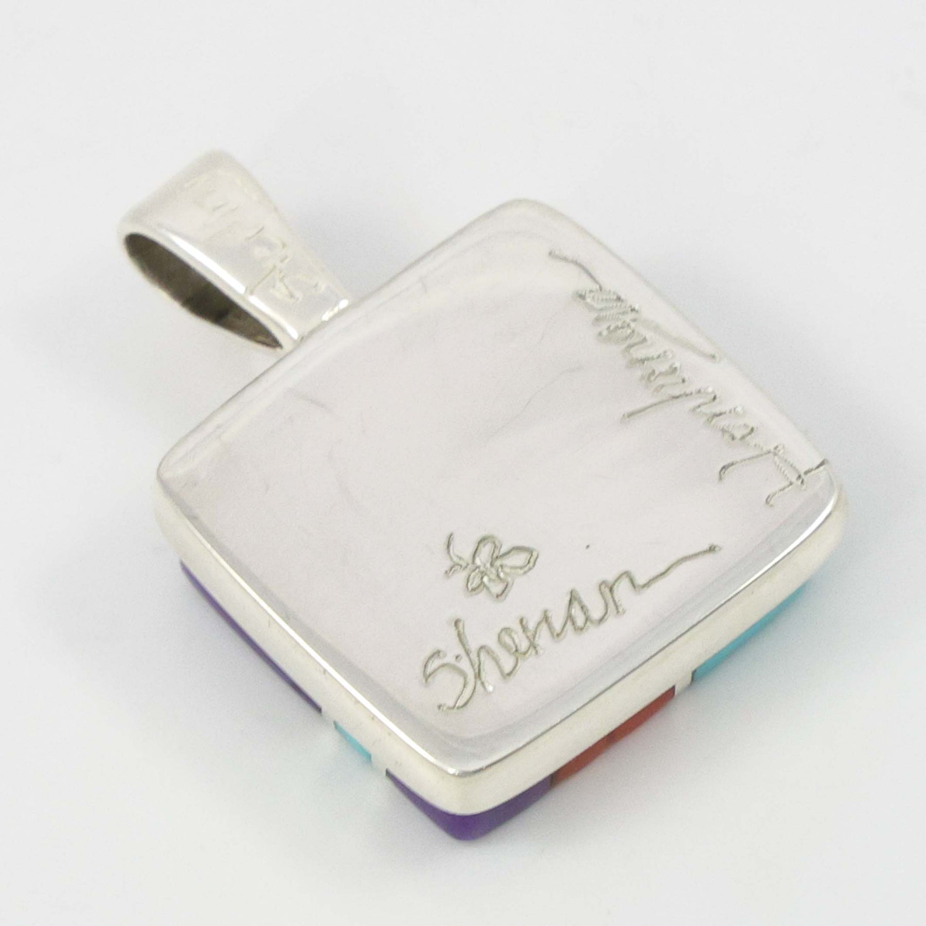 Sterling Silver Pendant with Cobble Inlaid Natural Kingman Turquoise, Natural Lone Mountain Turquoise, Mediterranean Coral, and Sugilite.