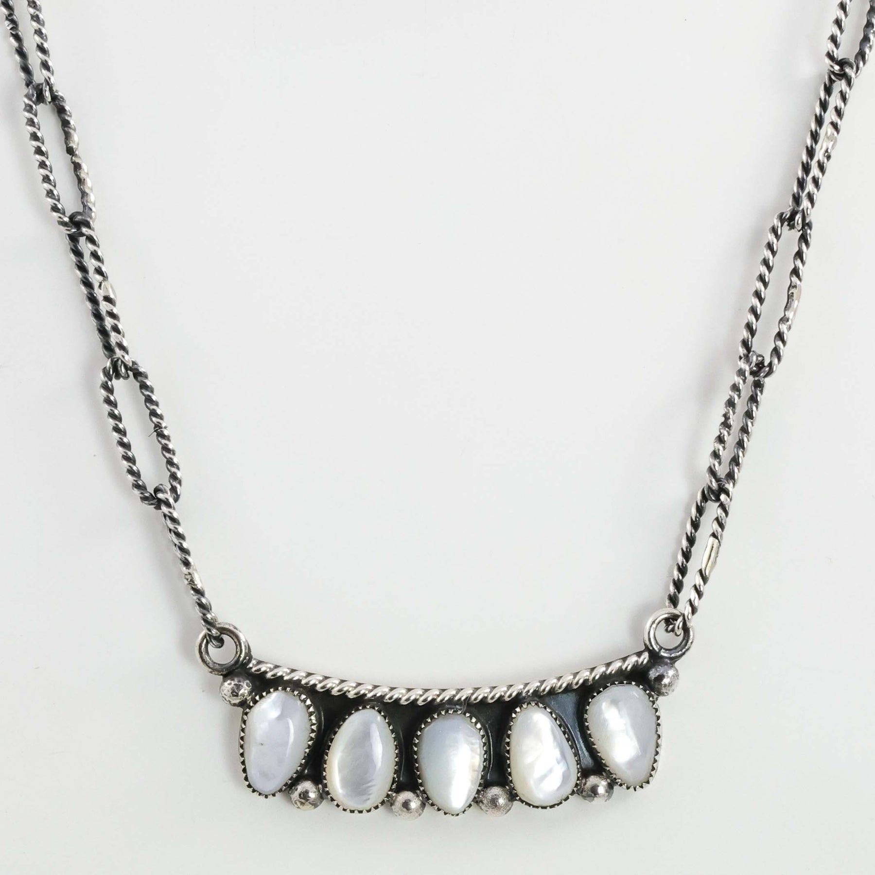 Sterling Silver Link Necklace set with Mother of Pearl Shell.