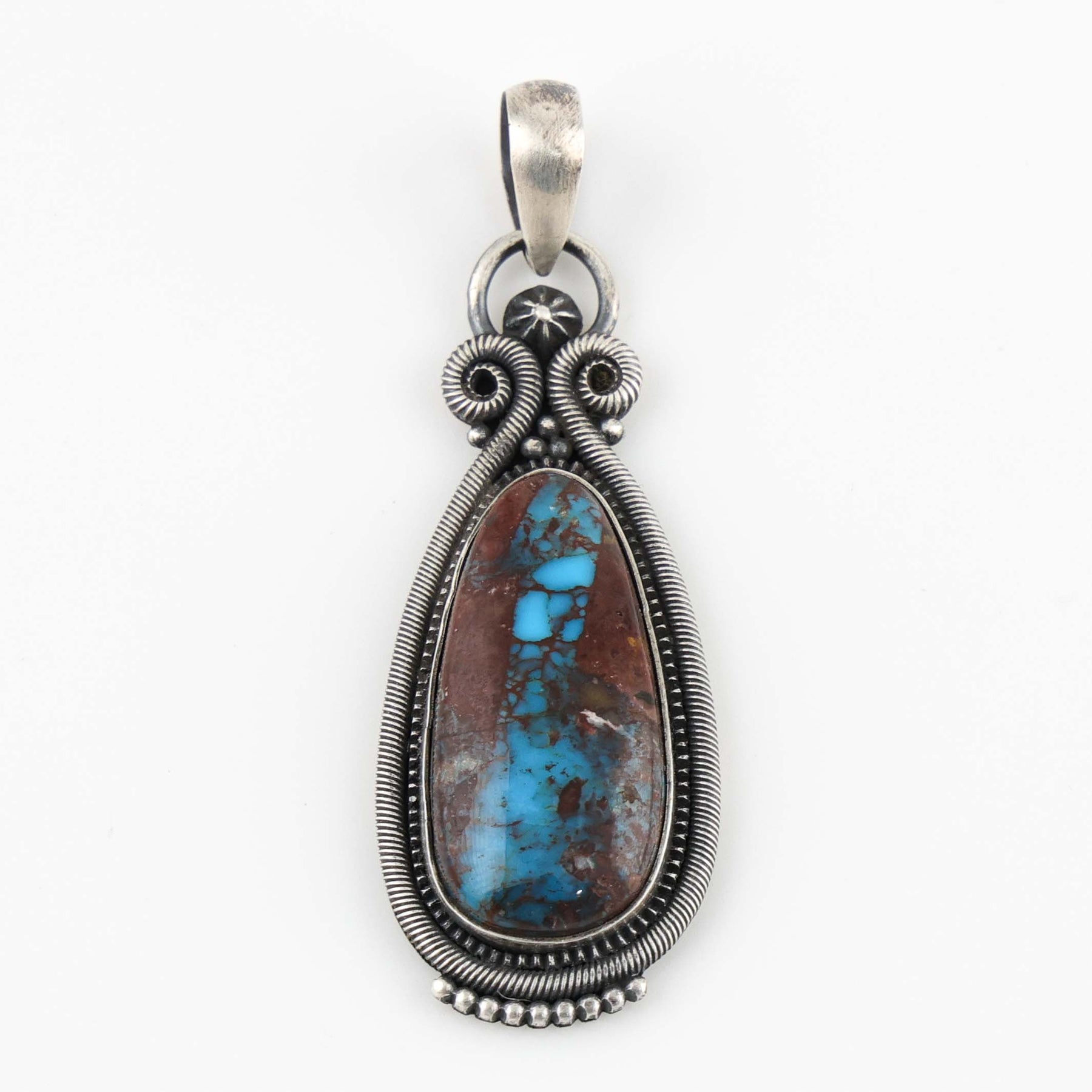 Sterling Silver Pendant set with Natural Bisbee Turquoise from Arizona.