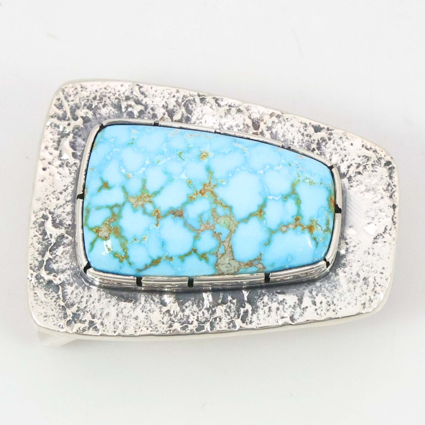 Tufa Cast Sterling Silver Western Style Belt Buckle set with Natural Ithaca Peak Turquoise from Arizona.