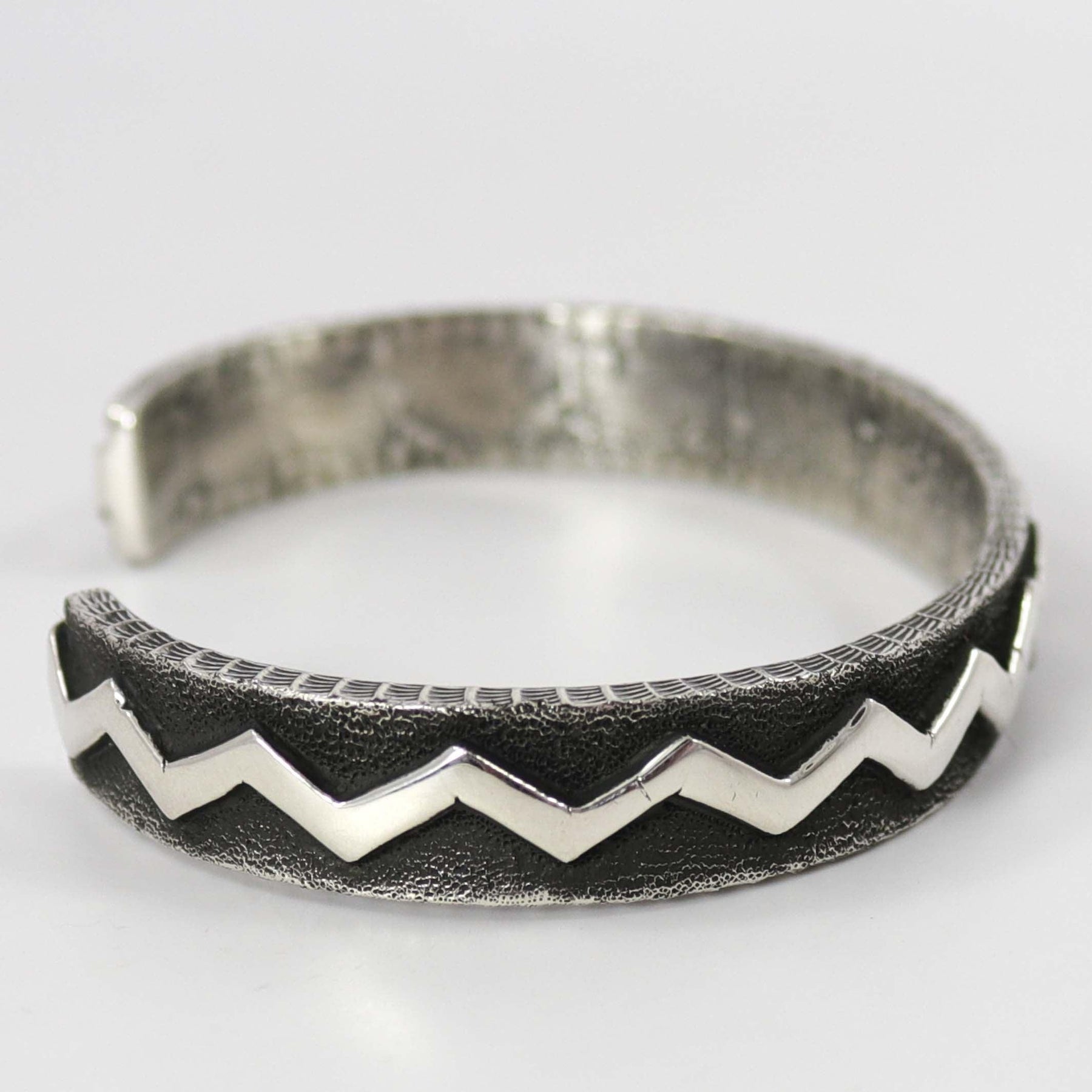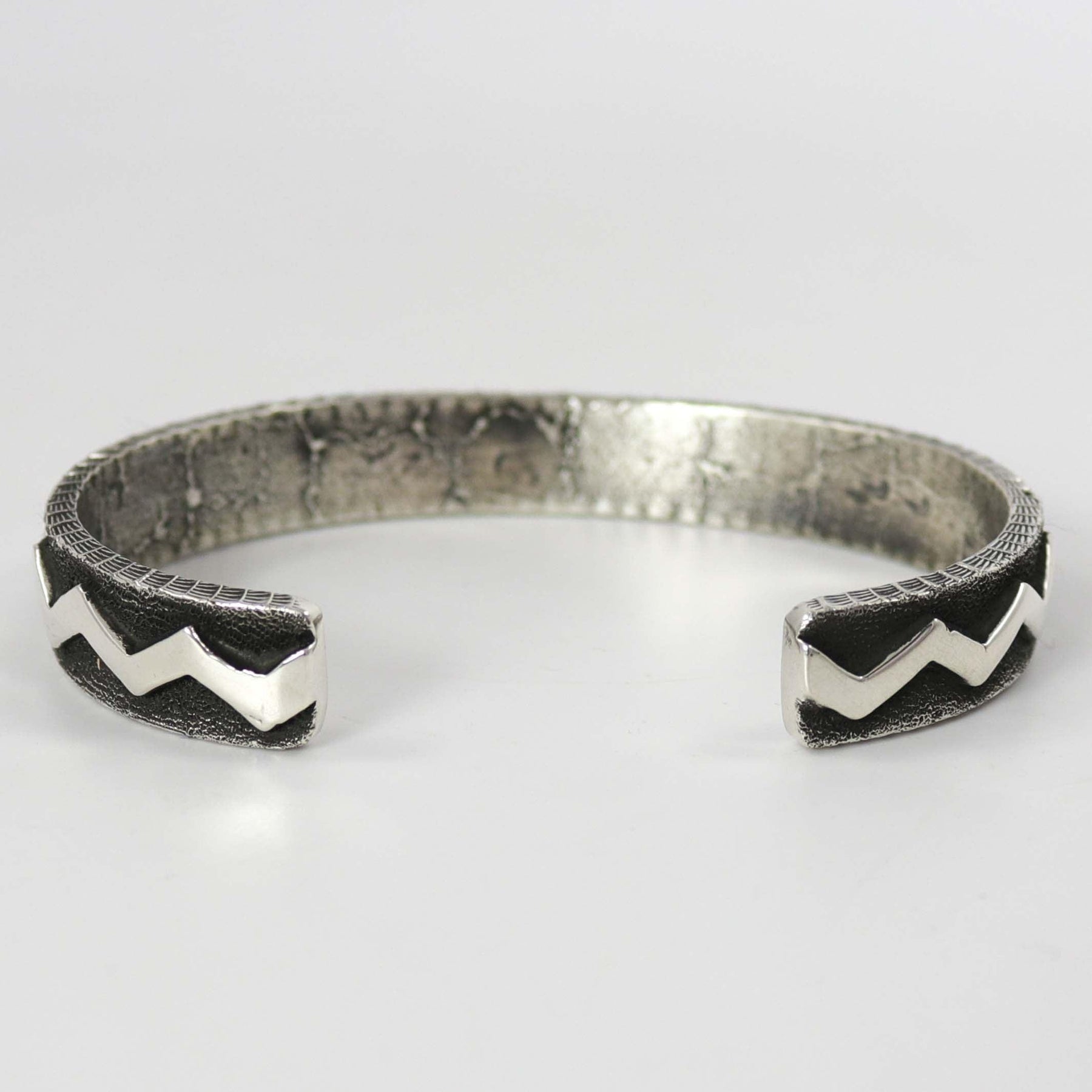 Tufa Cast Sterling Silver Cuff Bracelet with Lightning Design.