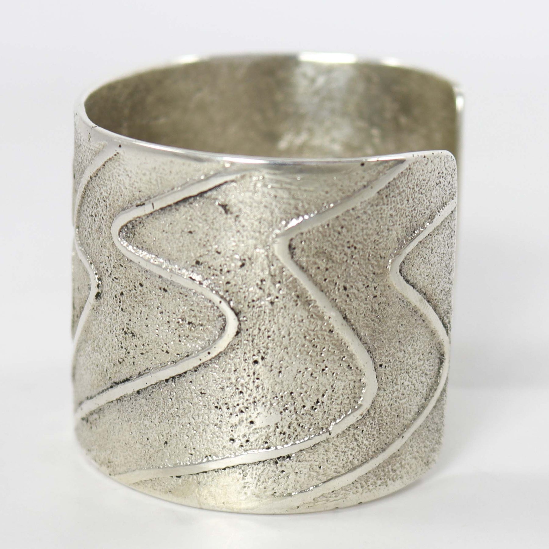 Tufa Cast Sterling Silver Cuff Bracelet with Ripple Wave Design Elements.