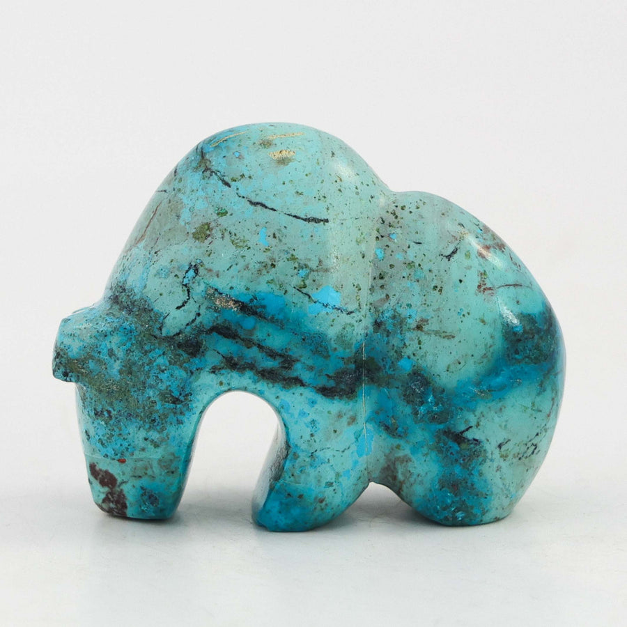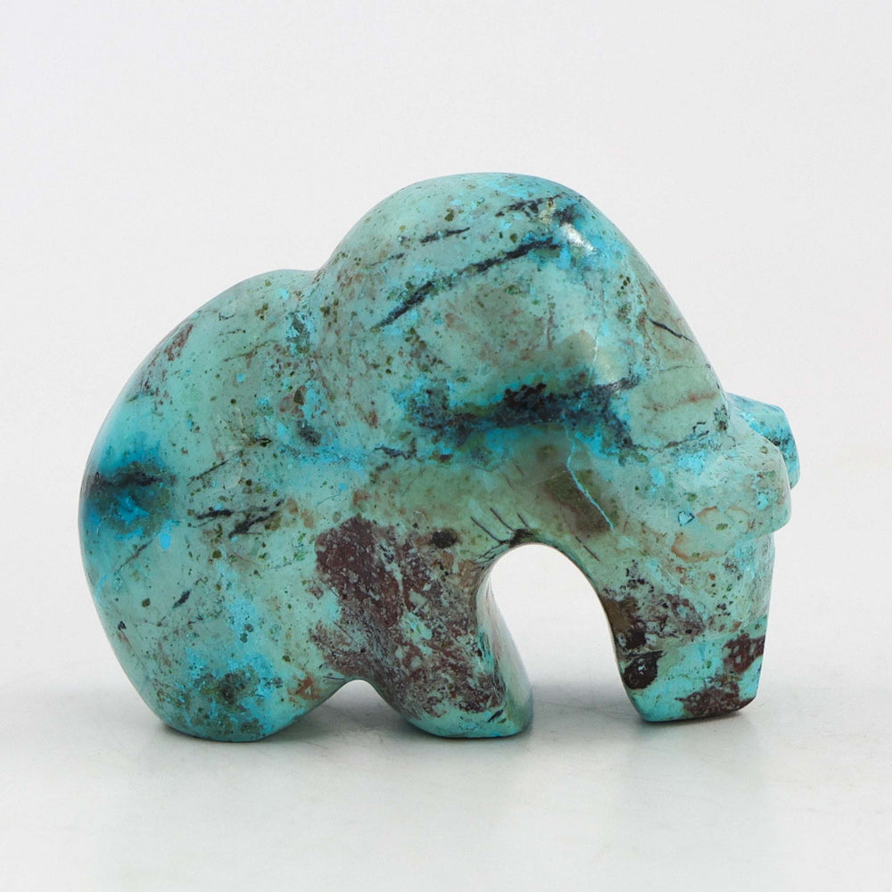 Turquoise, or "Sky Stone", is iconic for its use in Native American jewelry. For hundreds of years, native people in the Southwest used turquoise for ornamental and religious purposes. The Cerrillos Hills in New Mexico are riddled with prehistoric turquoise mines, possibly dating back as early as the first century CE. American Turquoise is mined in Arizona, Colorado, Nevada, and New Mexico, with Arizona and Nevada being the largest producers. Arizona turquoise is known for its blue color. The presence of copper creates these deep blue tones. Nevada turquoise is better known for its green colors, with higher levels of iron and zinc causing this effect.