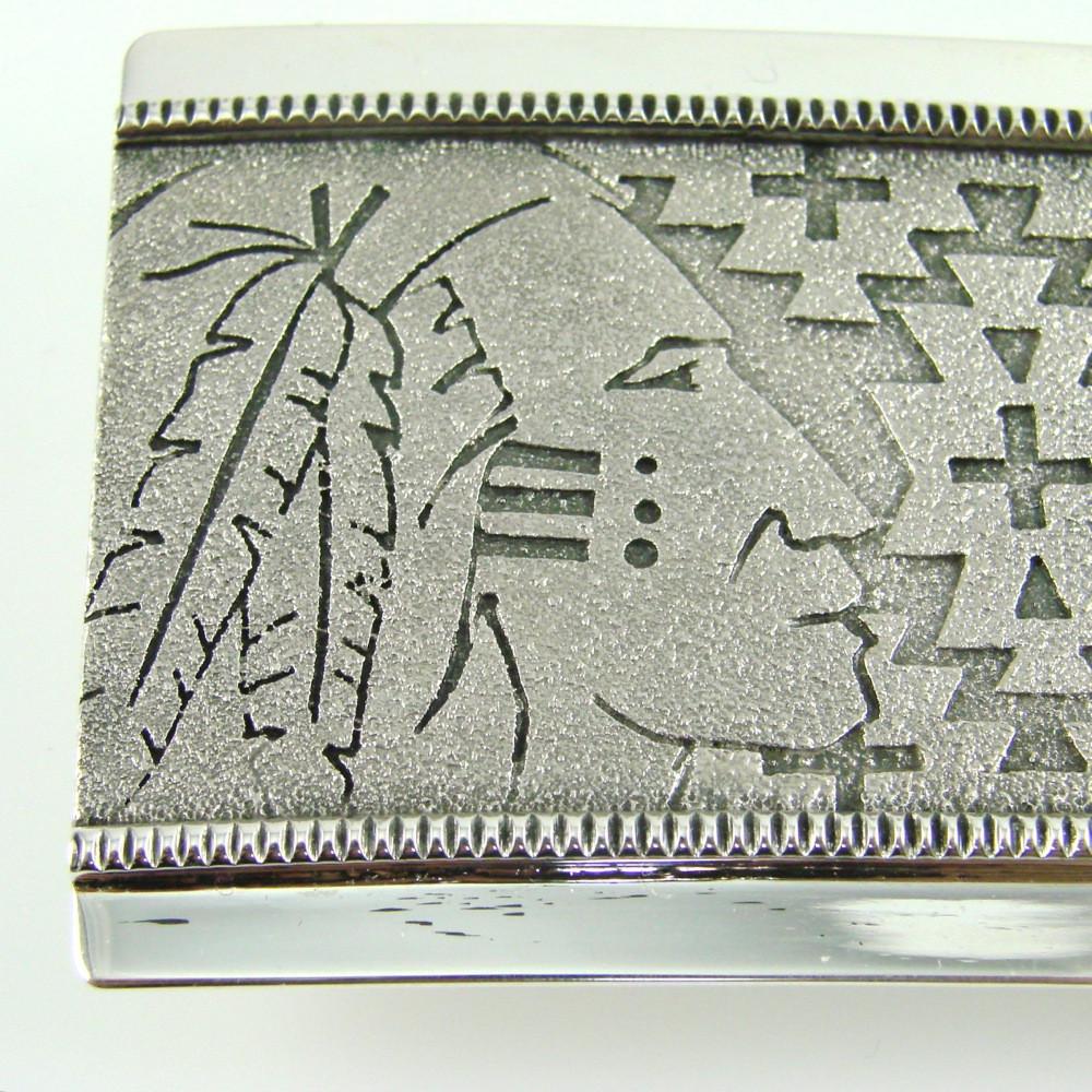 Sterling Silver Western Style Buckle in a Reticulated Texture Featuring a Navajo Man's Face and set with Natural Kingman Turquoise from Arizona.