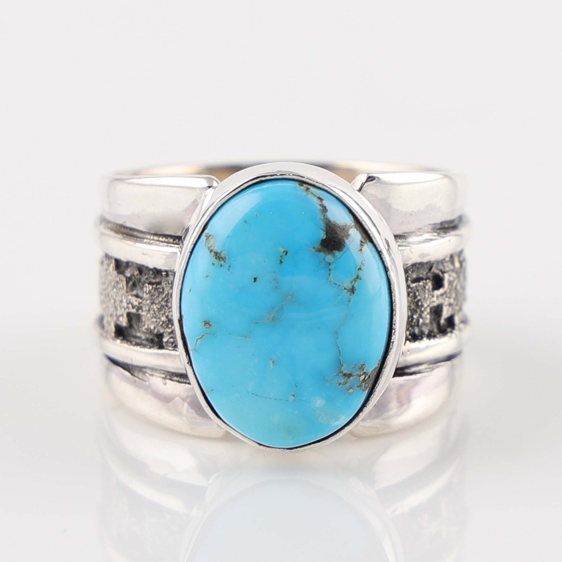 Sterling Silver Ring set with Natural Kingman Turquoise from Arizona.