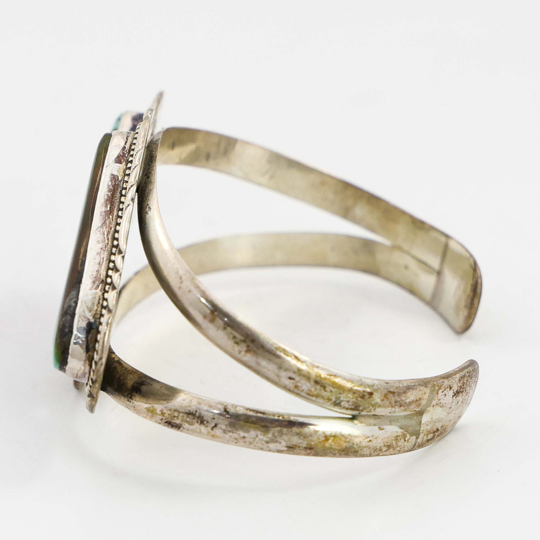 Early 2000s Sterling Silver Cuff Bracelet set with Natural Royston Turquoise from Nevada.