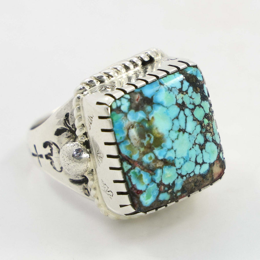 Hand-Forged Coin Silver Pendant with Inlaid Natural Royston Turquoise on a 30” Adjustable Black Leather Cord.