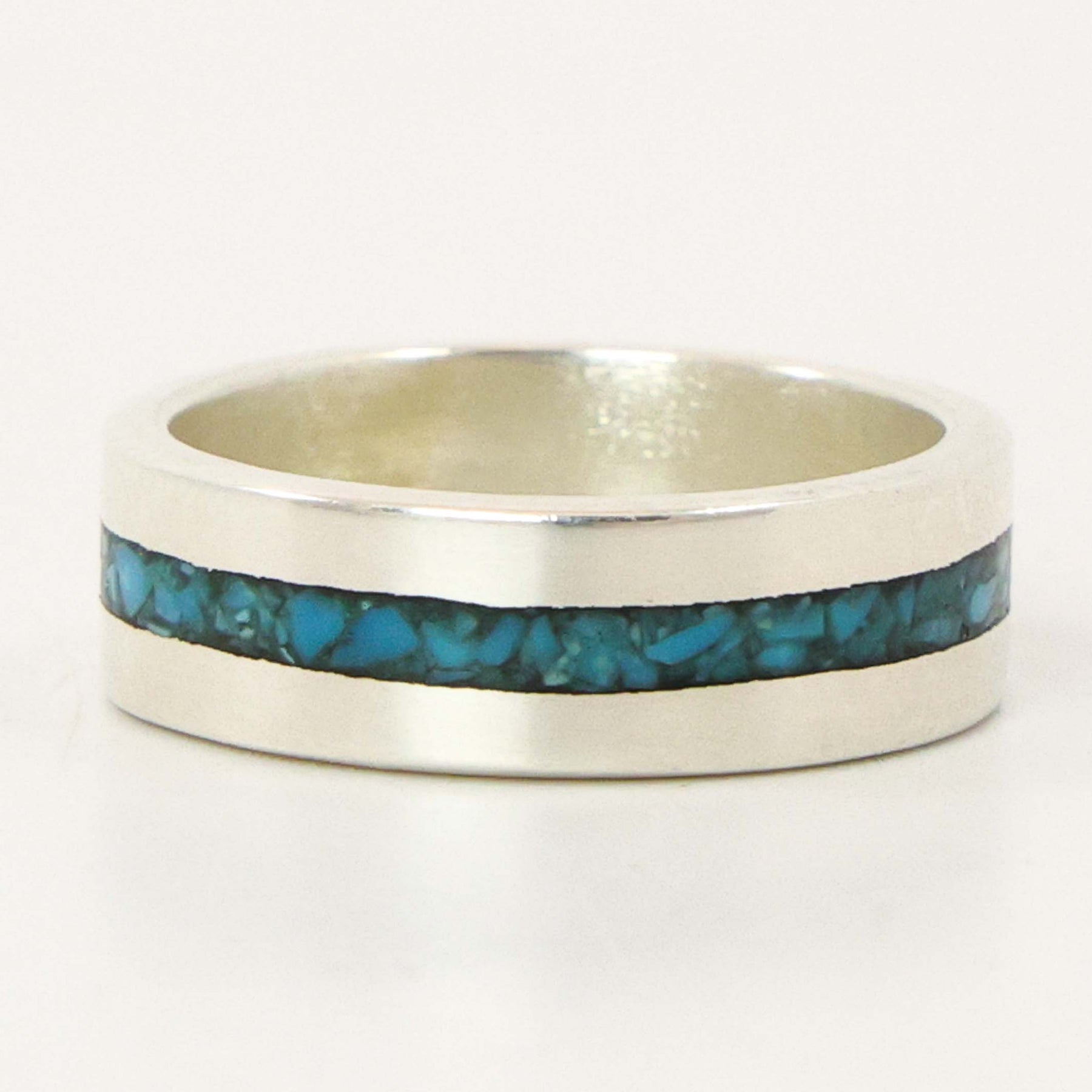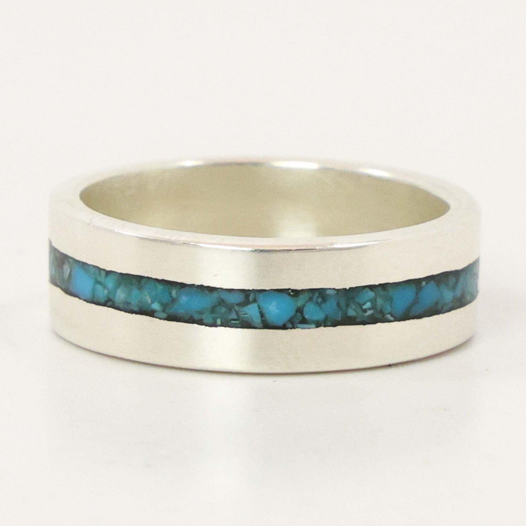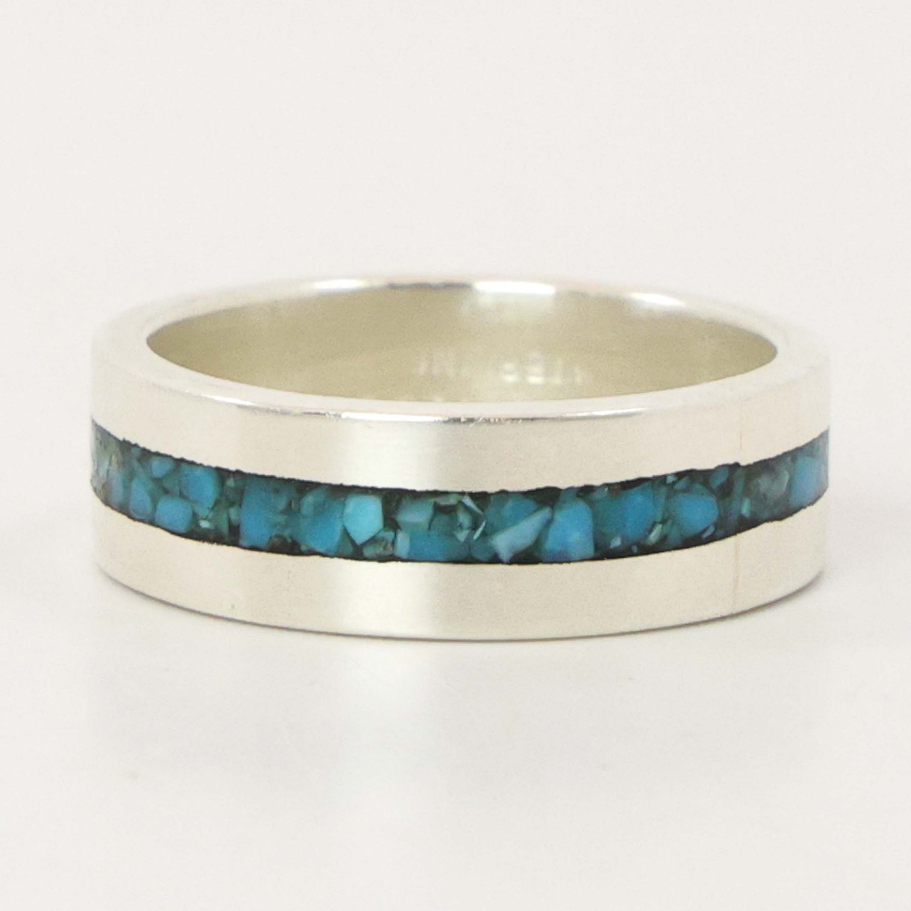 Sterling Silver Ring with Turquoise Chip Inlay.