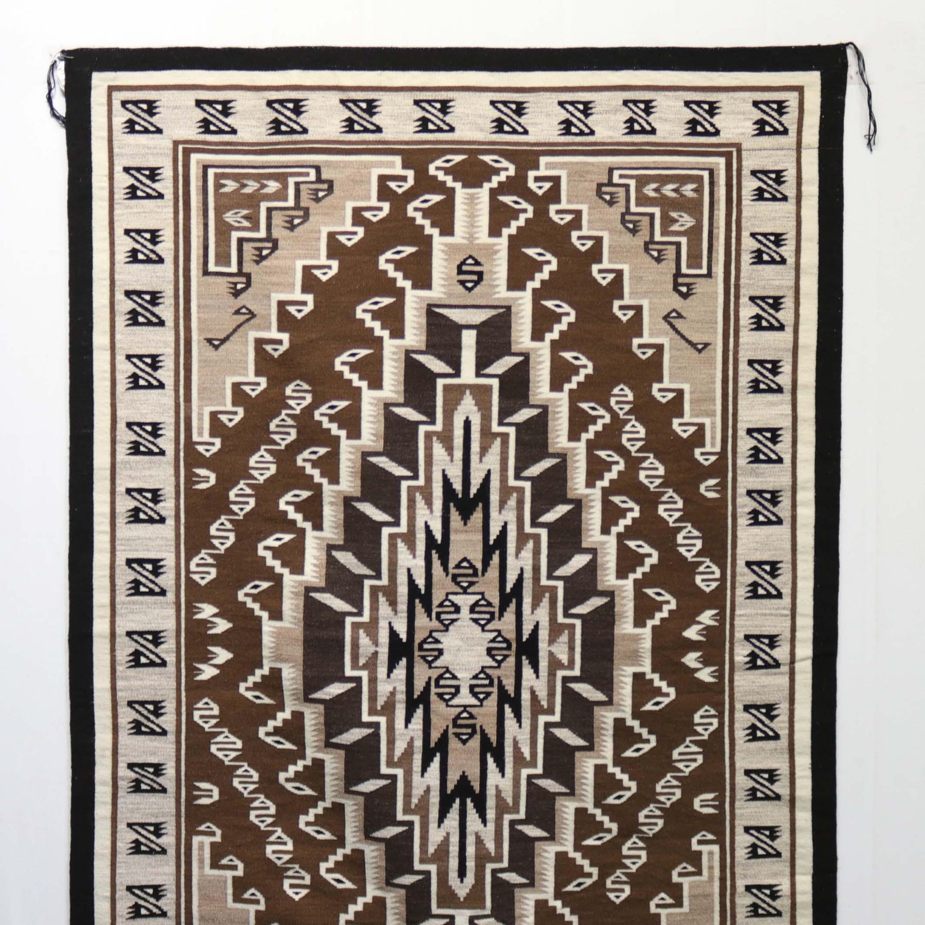 Finely Woven, Tapestry Quality Two Grey Hills Weaving with all Natural Undyed Wool. The weaving is woven with extremely fine hand spun wool threads and features more than 100 threads per inch.