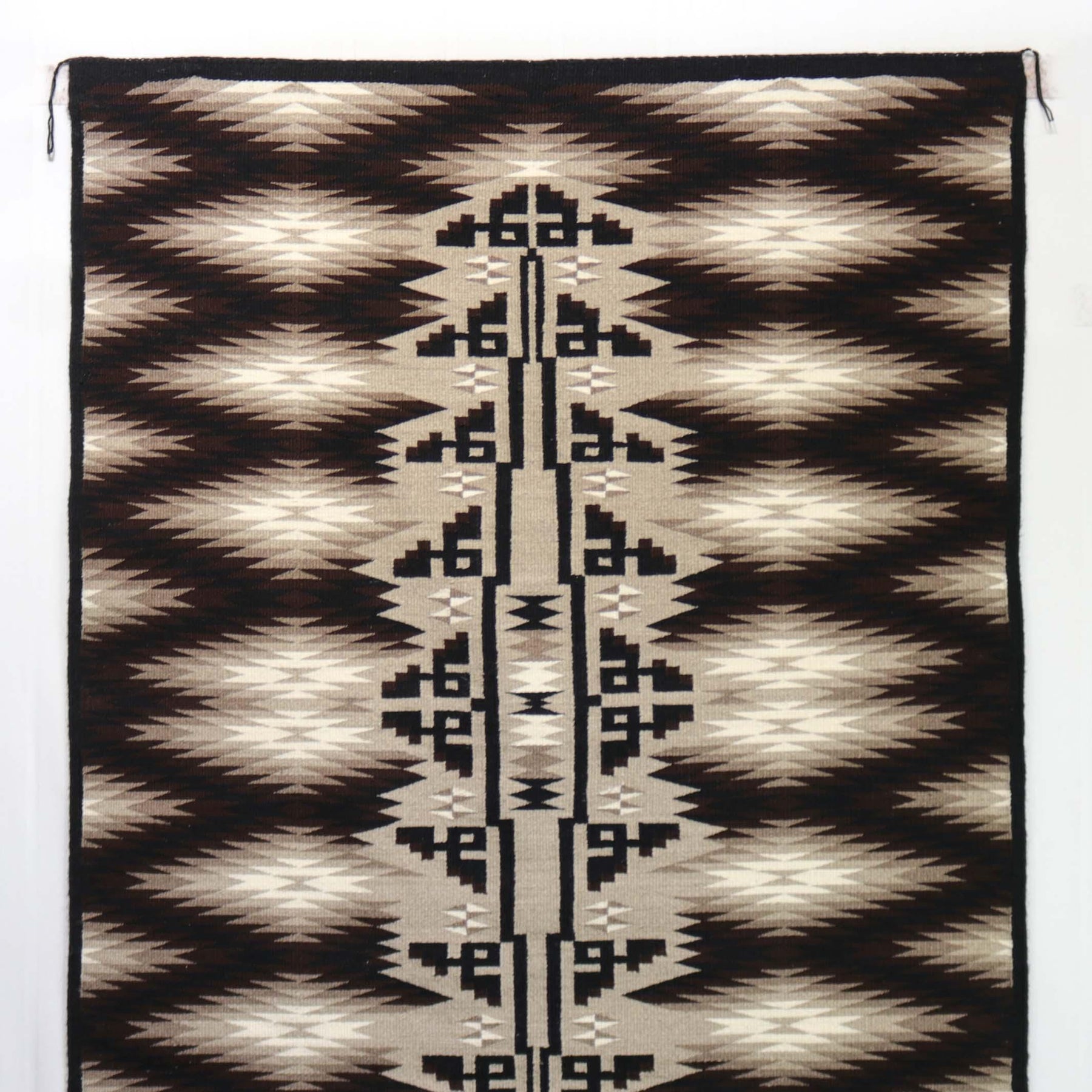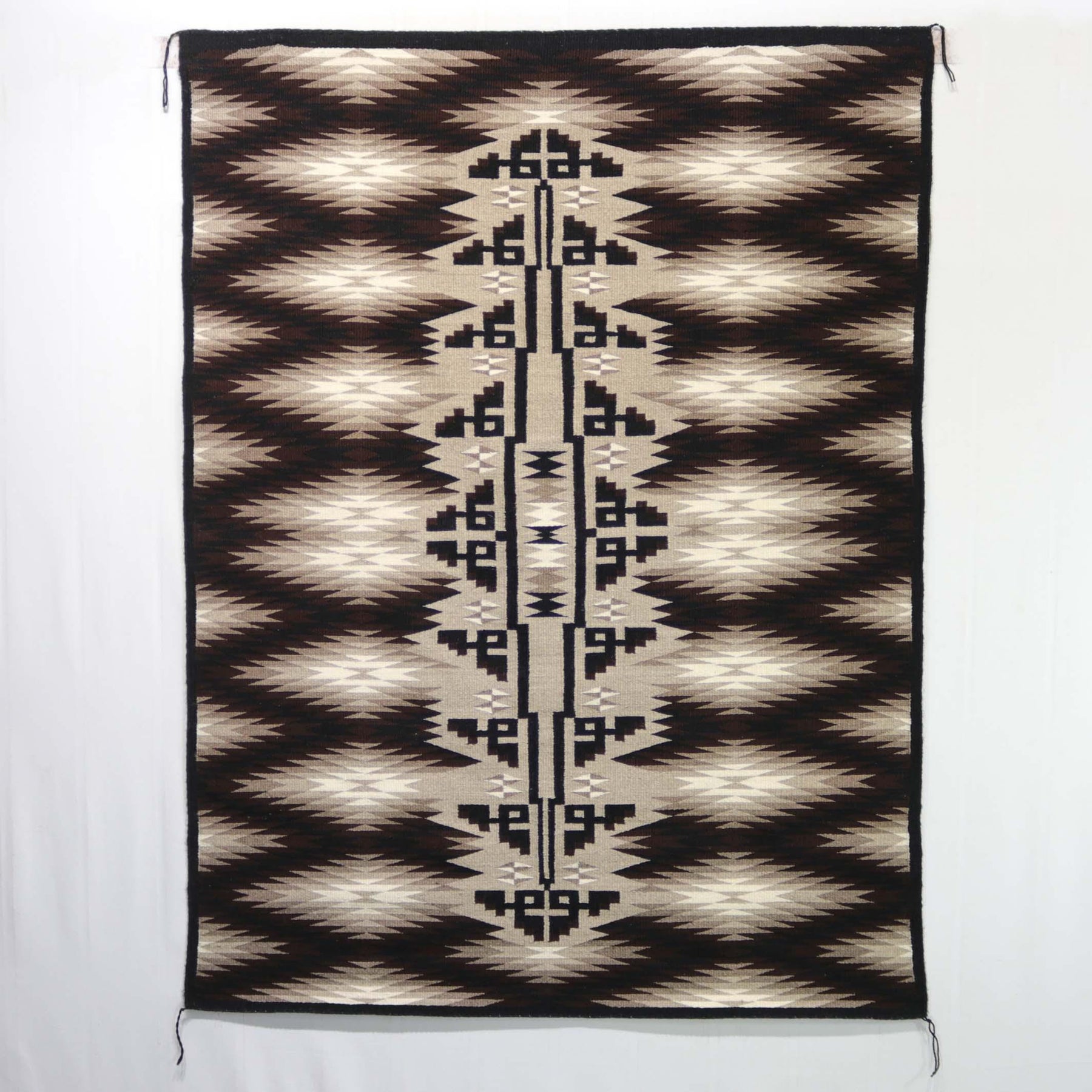 Navajo Weaving with a Central Diamond Motif on a Eye Dazzler Background and featuring Natural Undyed Wool.
