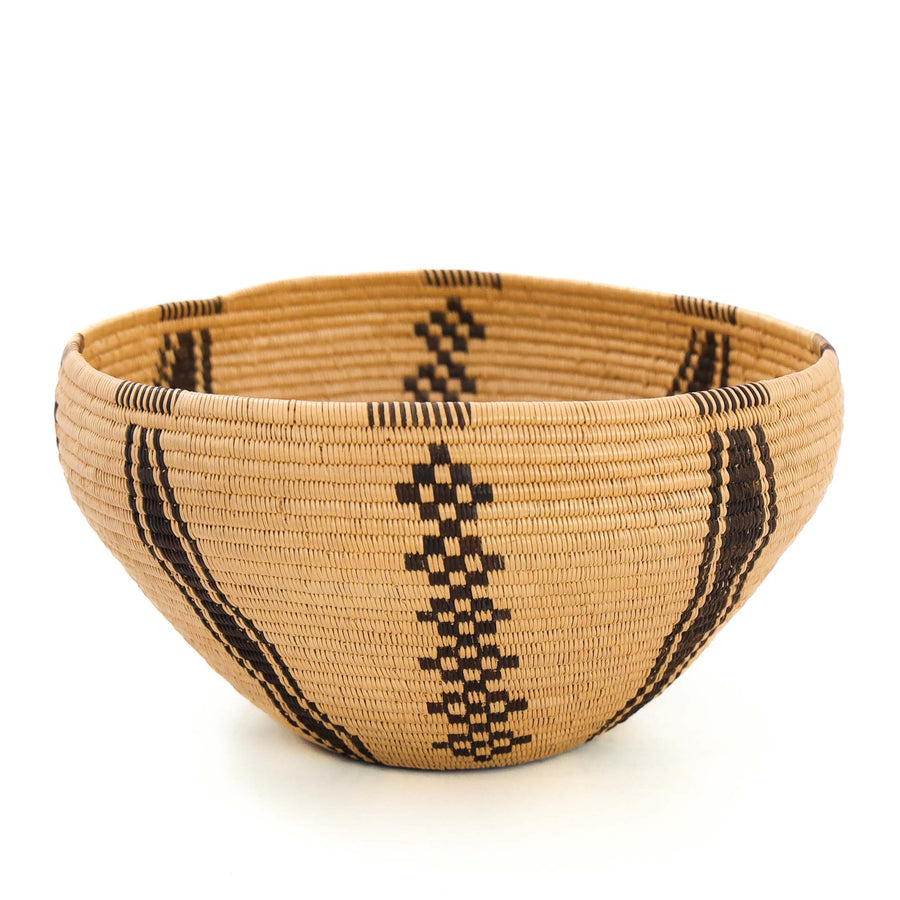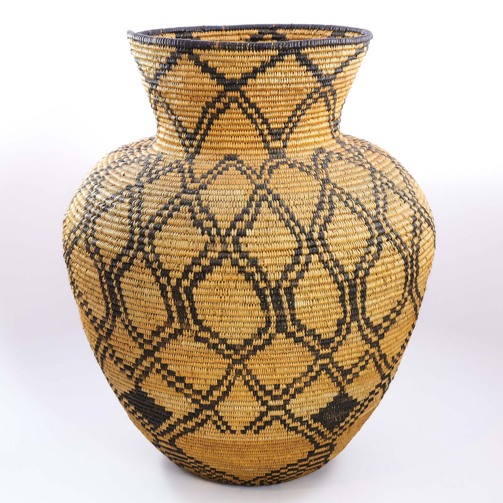 Circa 1890s Handwoven Navajo Transitional Weaving with Hand-Carded and Spun Wool in a Banded Diamond Design using Aniline Red Dye and Natural Undyed Wool Colors. Navajo weavings were originally made as blankets, but during the late 1800s, the arrival of inexpensive machine-woven blankets reduced demand for hand-woven ones. As traders introduced these pieces to tourists for use as rugs and wall hangings, weaving shifted in purpose. The “transitional period” was a time when Navajo weavers were transitioning from weaving blankets to rugs. This weaving is a prime example of these soft textiles with bright aniline dyes and no defined borders that bridged the blanket and rug periods.