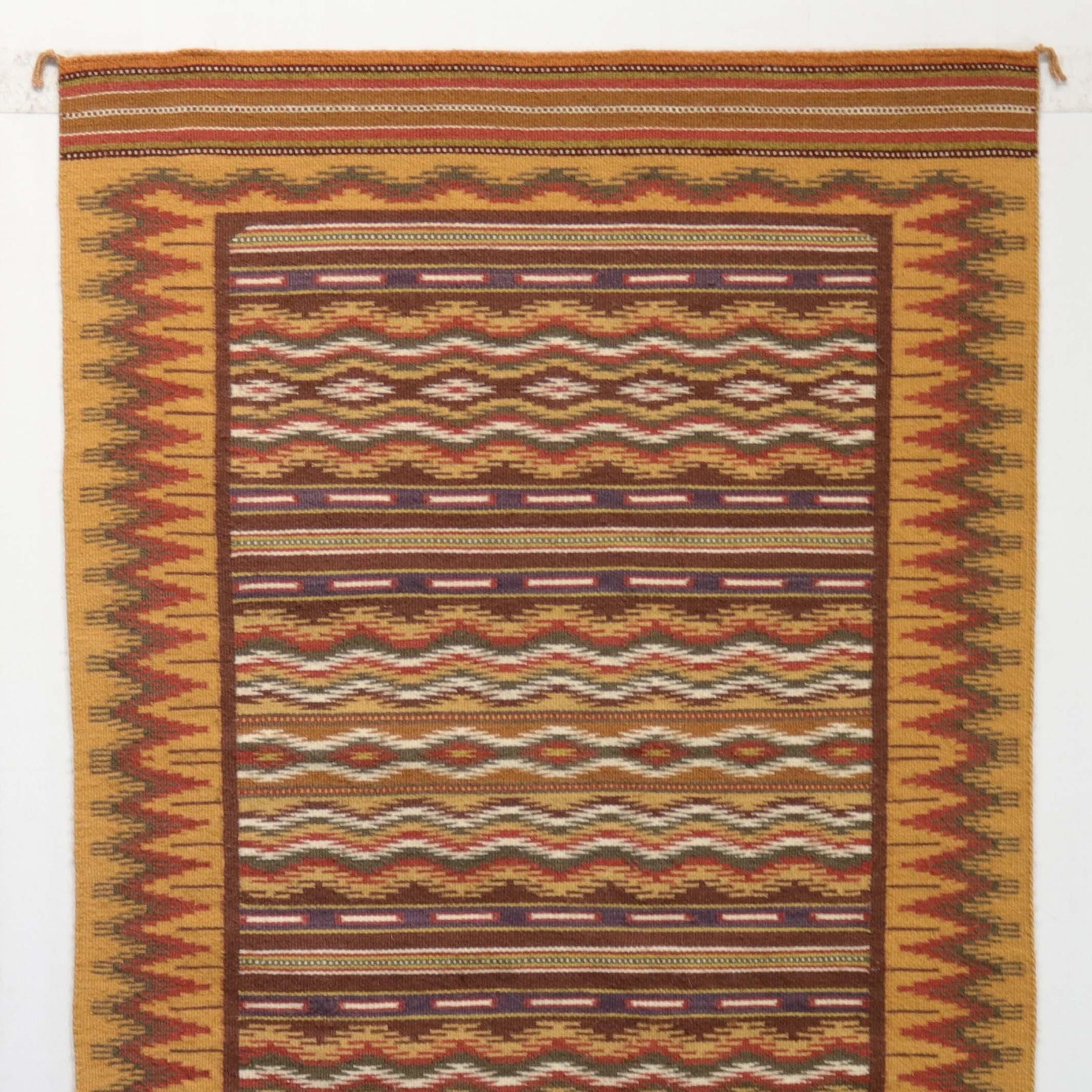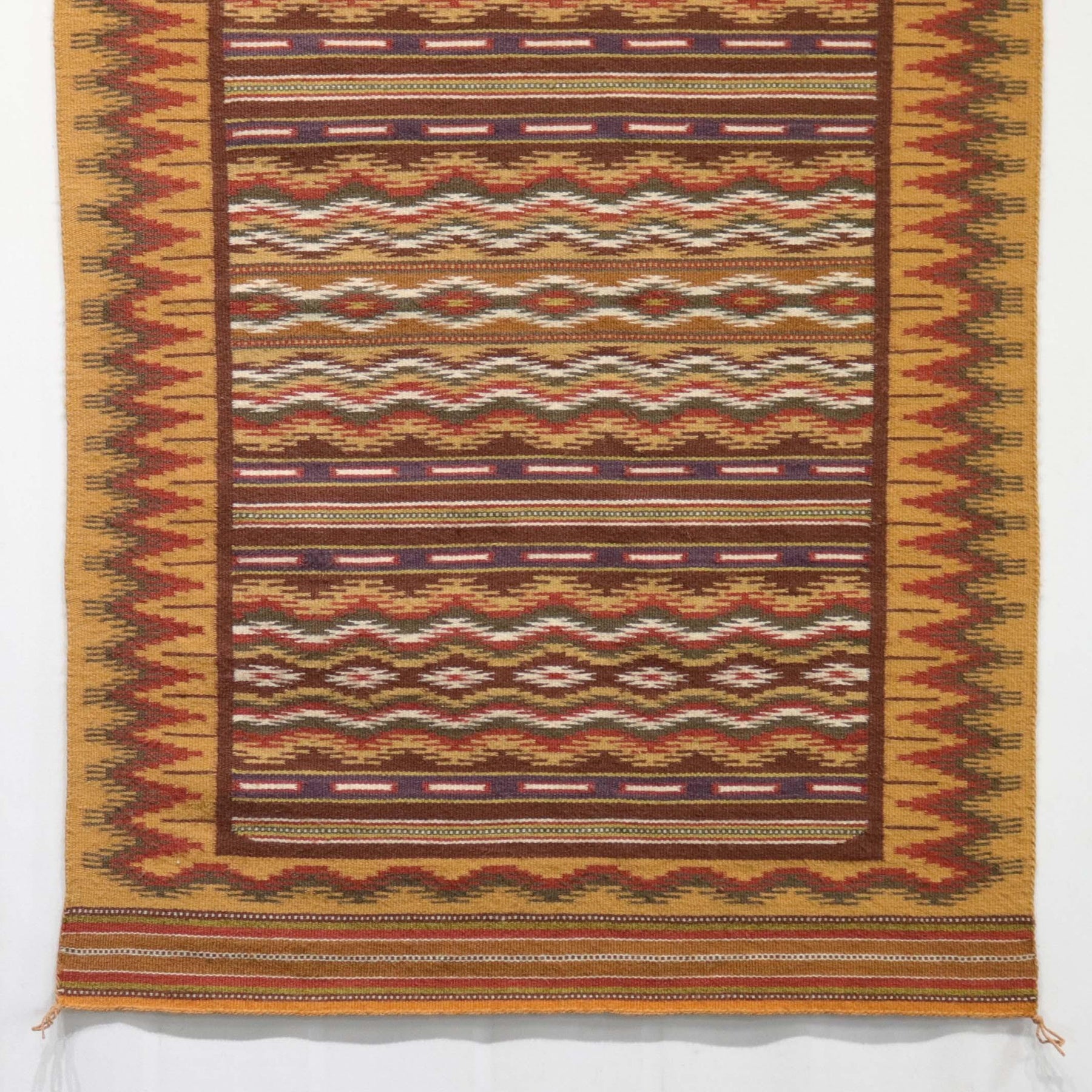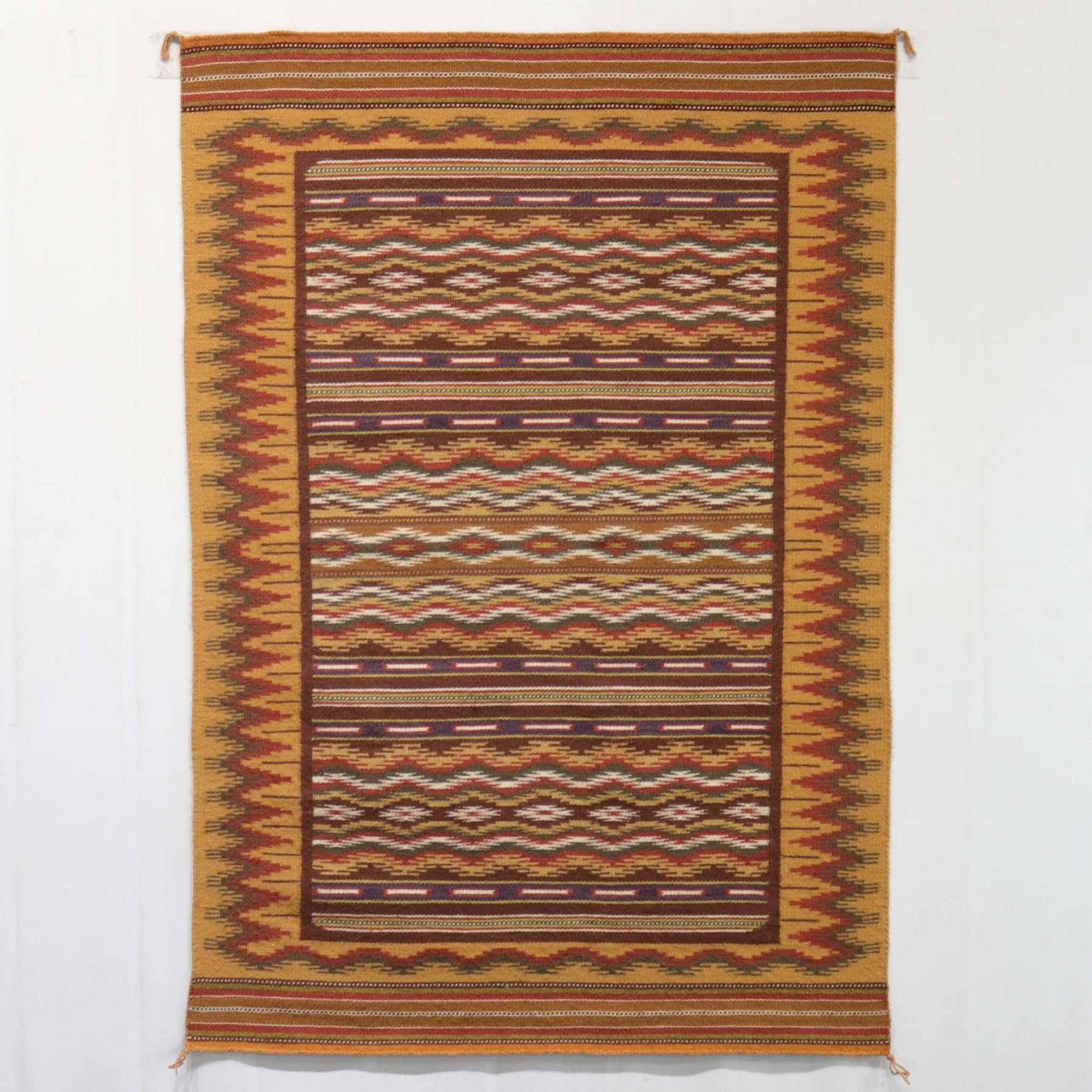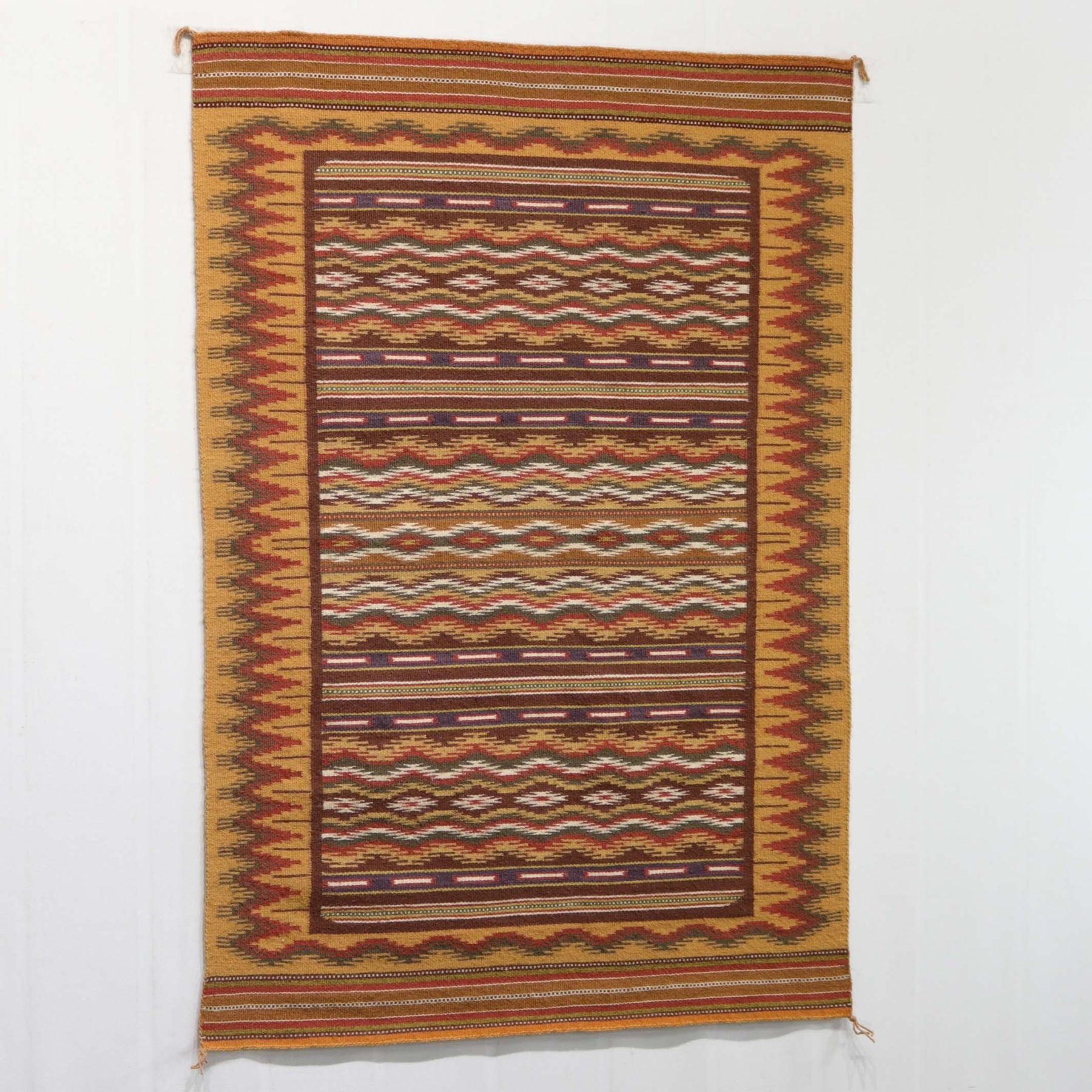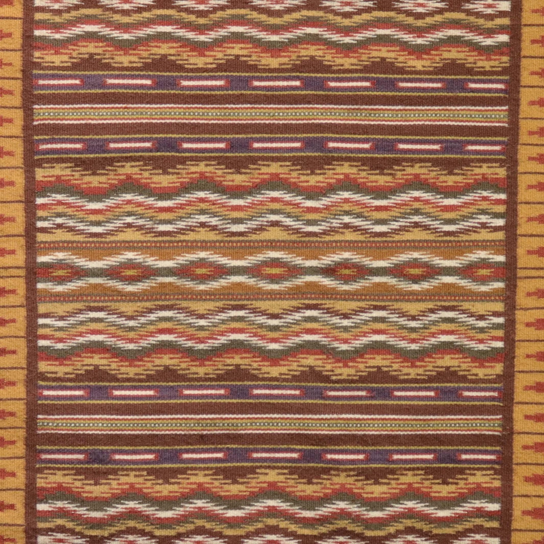 Circa 1980s Wide Ruins Weaving with Finely Woven Banded Design and Intricate Border. This weaving features all vegetal dyes.
