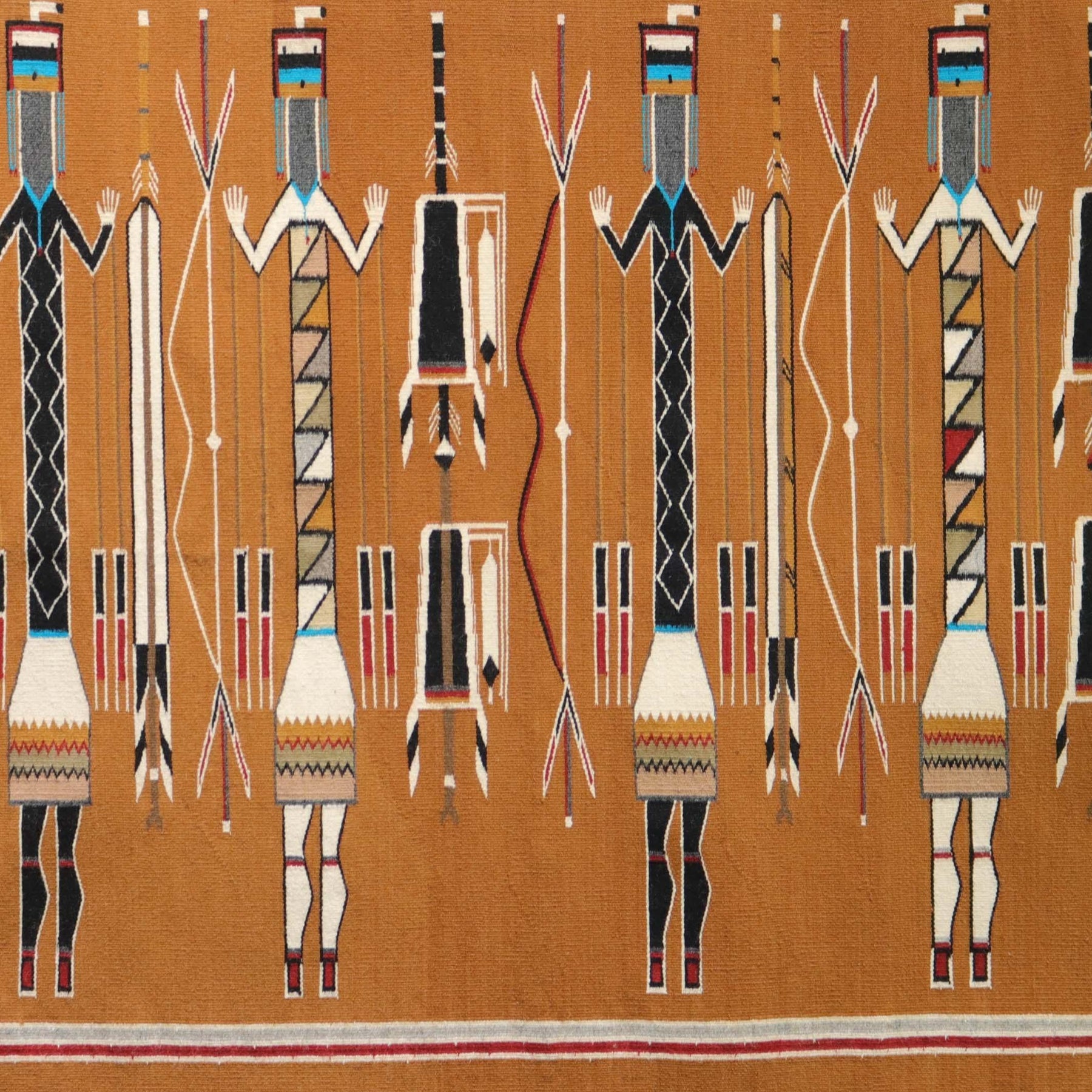 Fine Vintage (1960s) Sandpainting Weaving Depicting Four Yei Figures and a Rainbow Guardian.