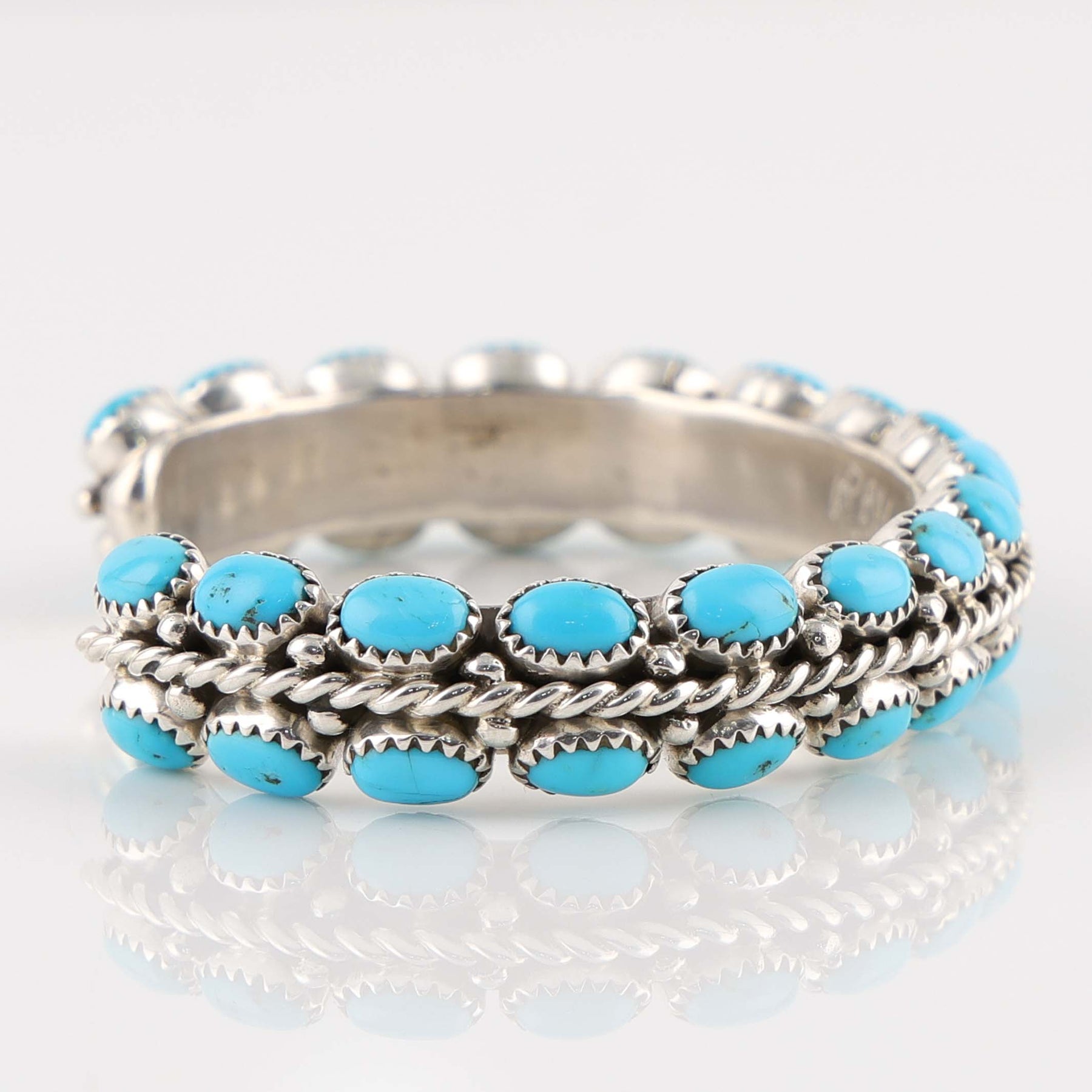 Sterling Silver Cuff Bracelet set with Sleeping Beauty Turquoise from Arizona.
