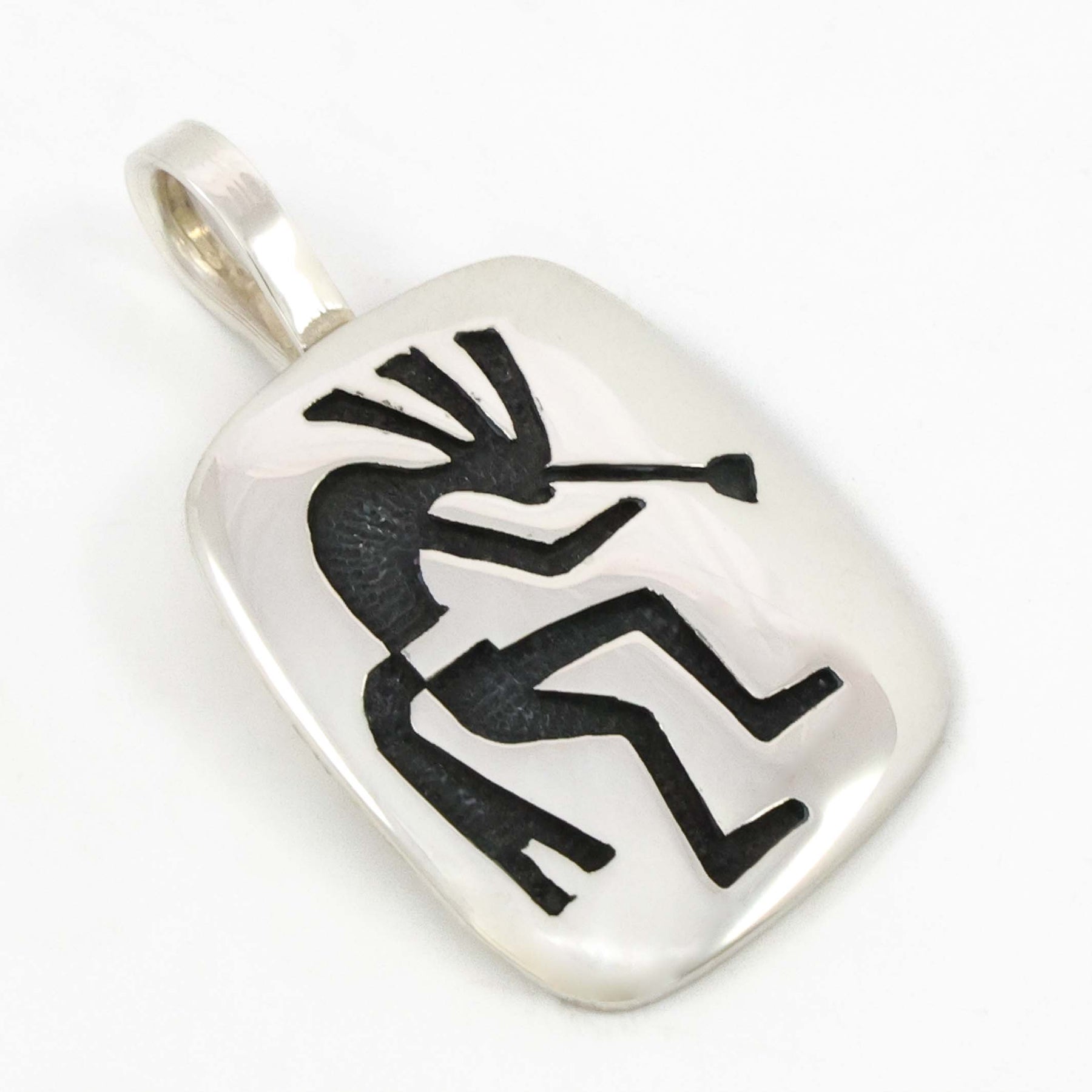 Sterling Silver Pendant with Hopi Overlaid Kokopelli Design.