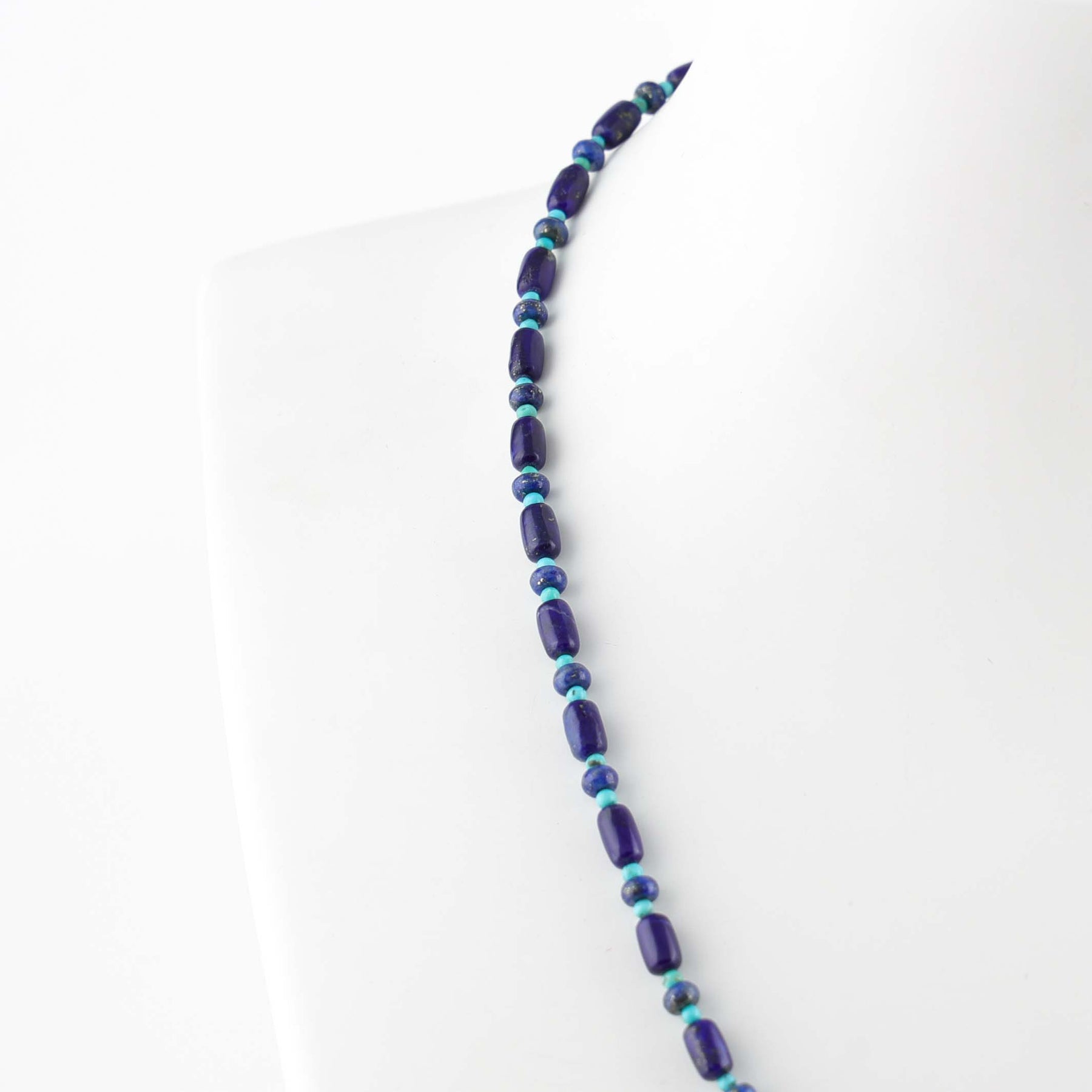 Single Strand Necklace with Lapis and Stabilized Turquoise Beads.