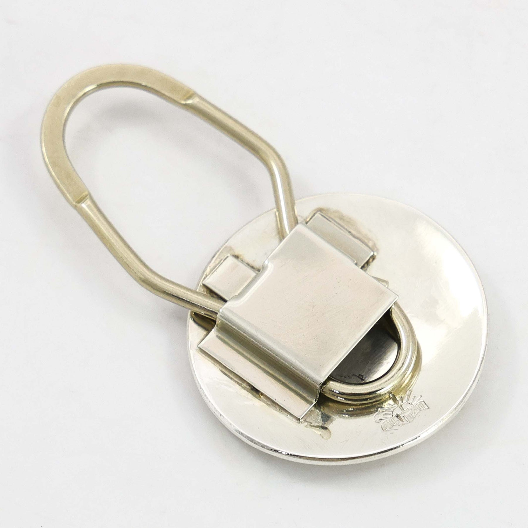 Stainless Steel Key Ring with a Sterling Silver Panel Featuring a Hopi Overlaid Water Wave Design.