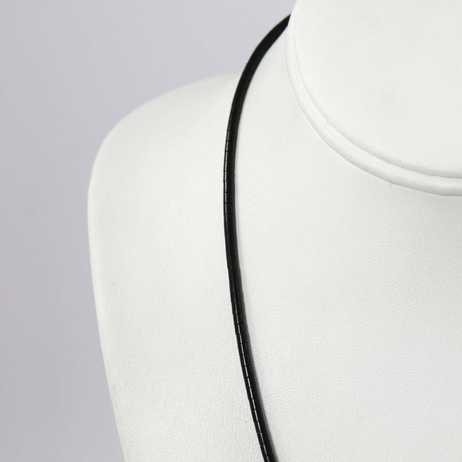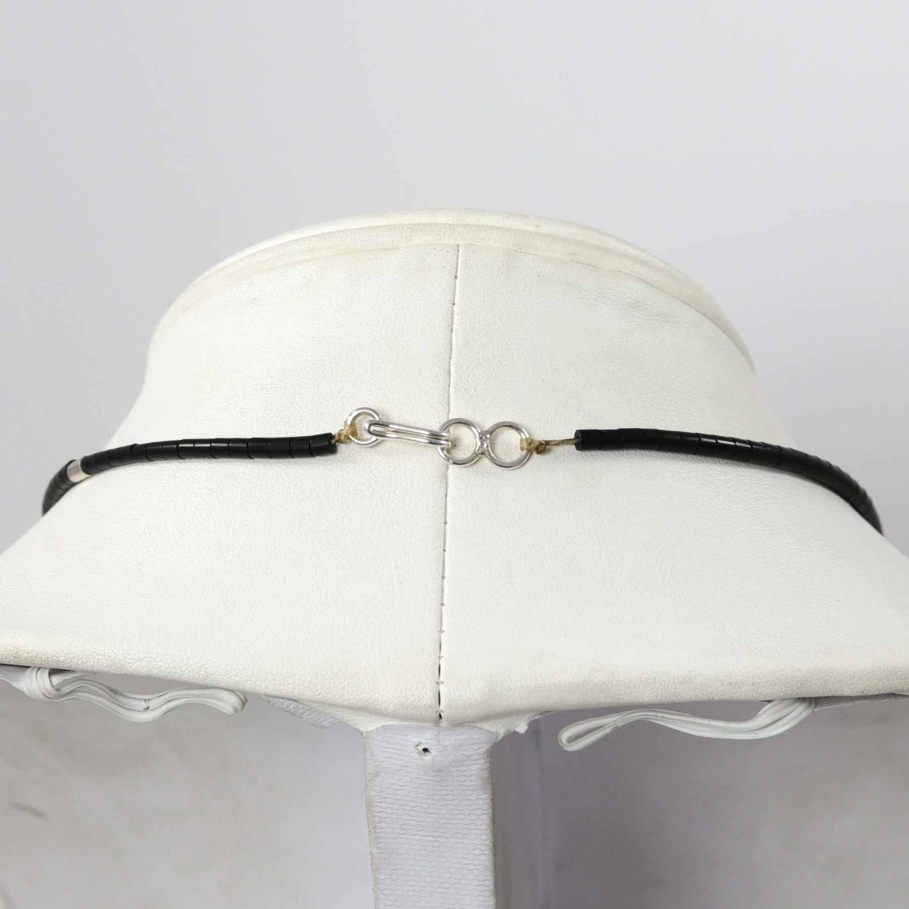 Single Strand Heishi Necklace with Hand-Rolled Jet Beads and a Single Hand-Drawn Sterling Silver Bead and Clasp.