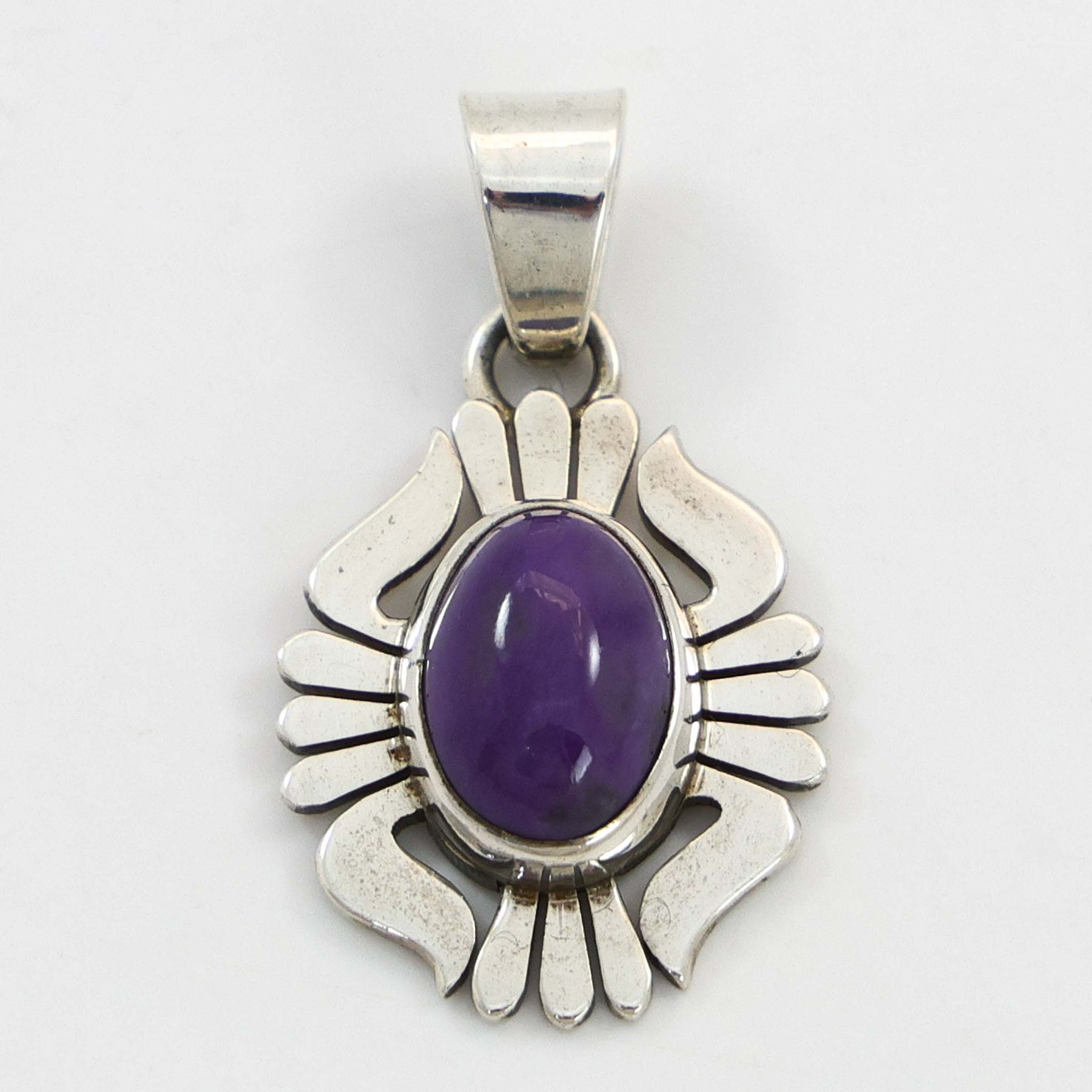 Sterling Silver Ketoh Pendant set with Sugilite, by award-winning Navajo silversmith, Allison “Snowhawk” Lee (1958 - 2022).