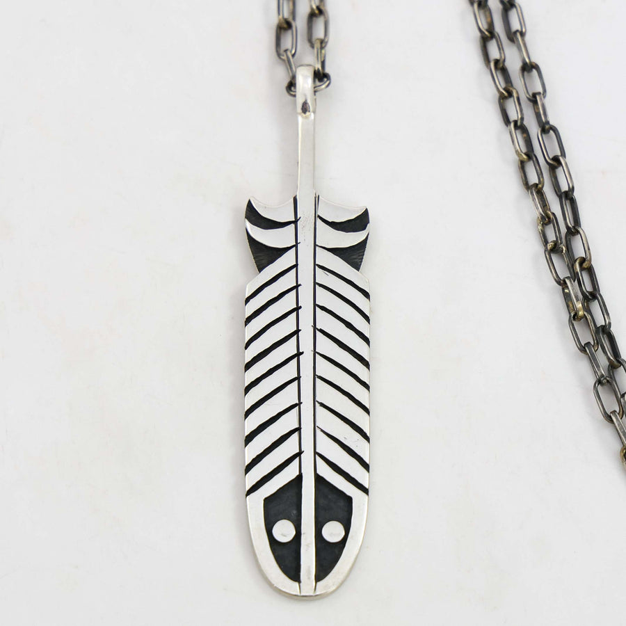 This pendant by master silversmith Ricky Coochwytewa features a stylized eagle feather rendered in Hopi overlay. The precision of the linework and balance of form reflect Ricky’s signature attention to symmetry and symbolism, continuing the legacy of his father, Victor Coochwytewa. In Hopi culture, eagle feathers are deeply sacred, representing strength, spiritual connection, and prayers carried to the heavens.