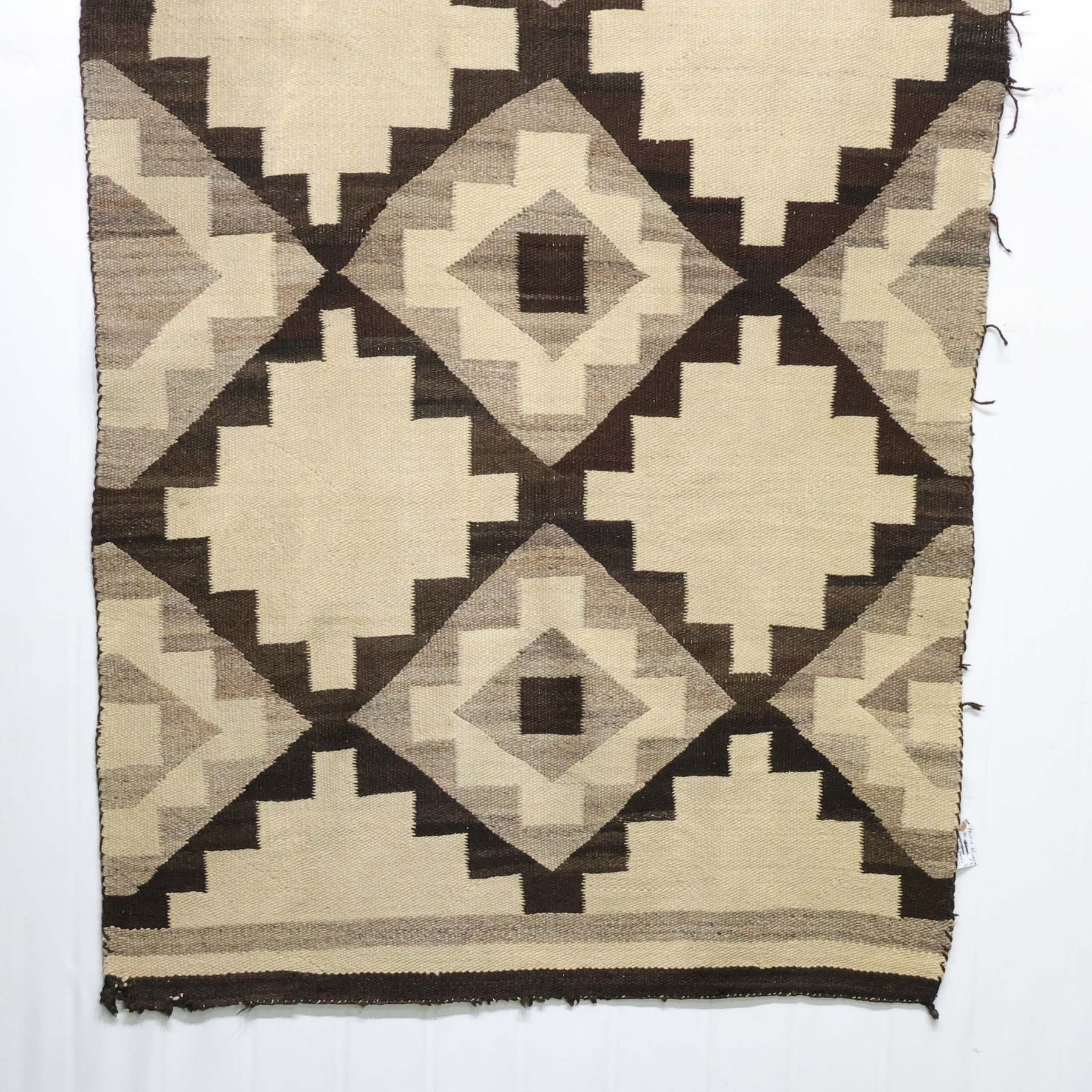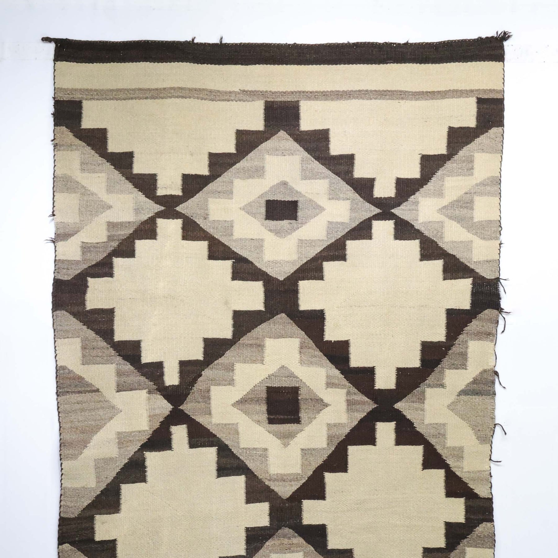 Handwoven 1910s Navajo Transitional Weaving with Hand-Carded and Spun Undyed Natural Wool. This weaving has a few small holes, small stains, selvedge weave wear, being sold as is and has been priced accordingly.