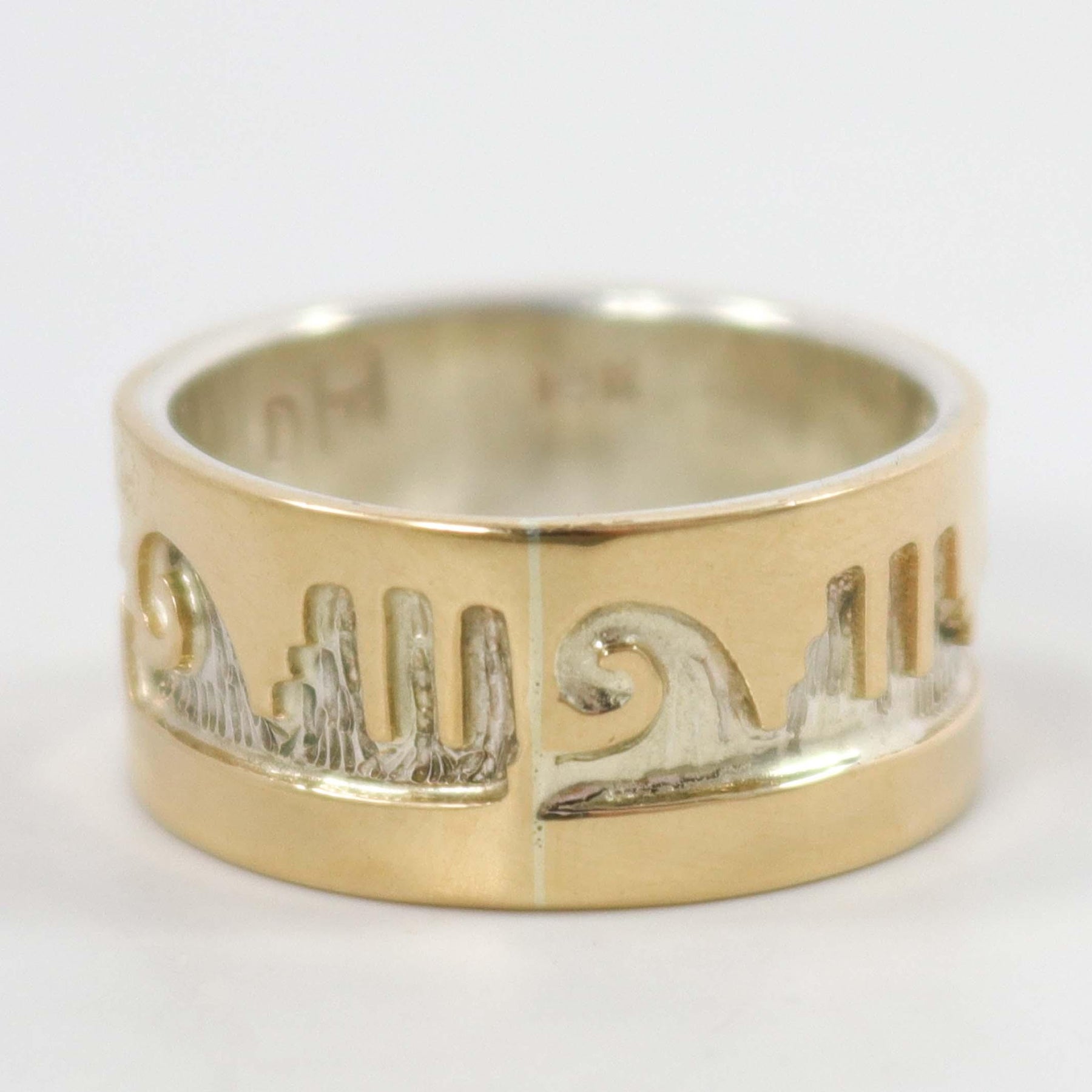 14k Gold on Sterling Silver Ring with Overlaid Monument Valleyand Water Wave Designs.