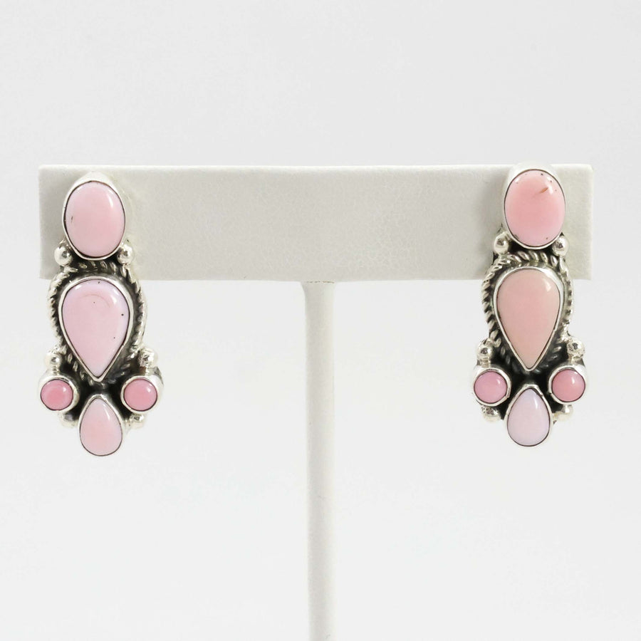 Sterling Silver Post and Dangle Earrings set with Pink Conch Shell.