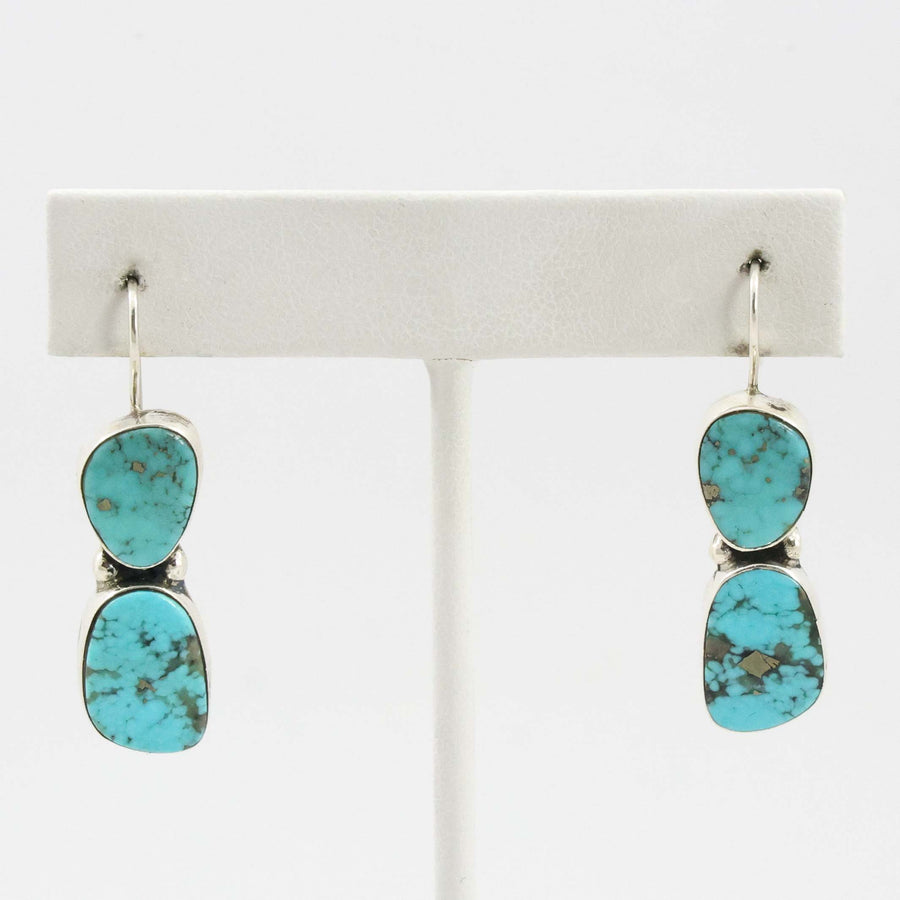 Sterling Silver French Hook Earrings set with Natural Kingman Turquoise from Arizona.