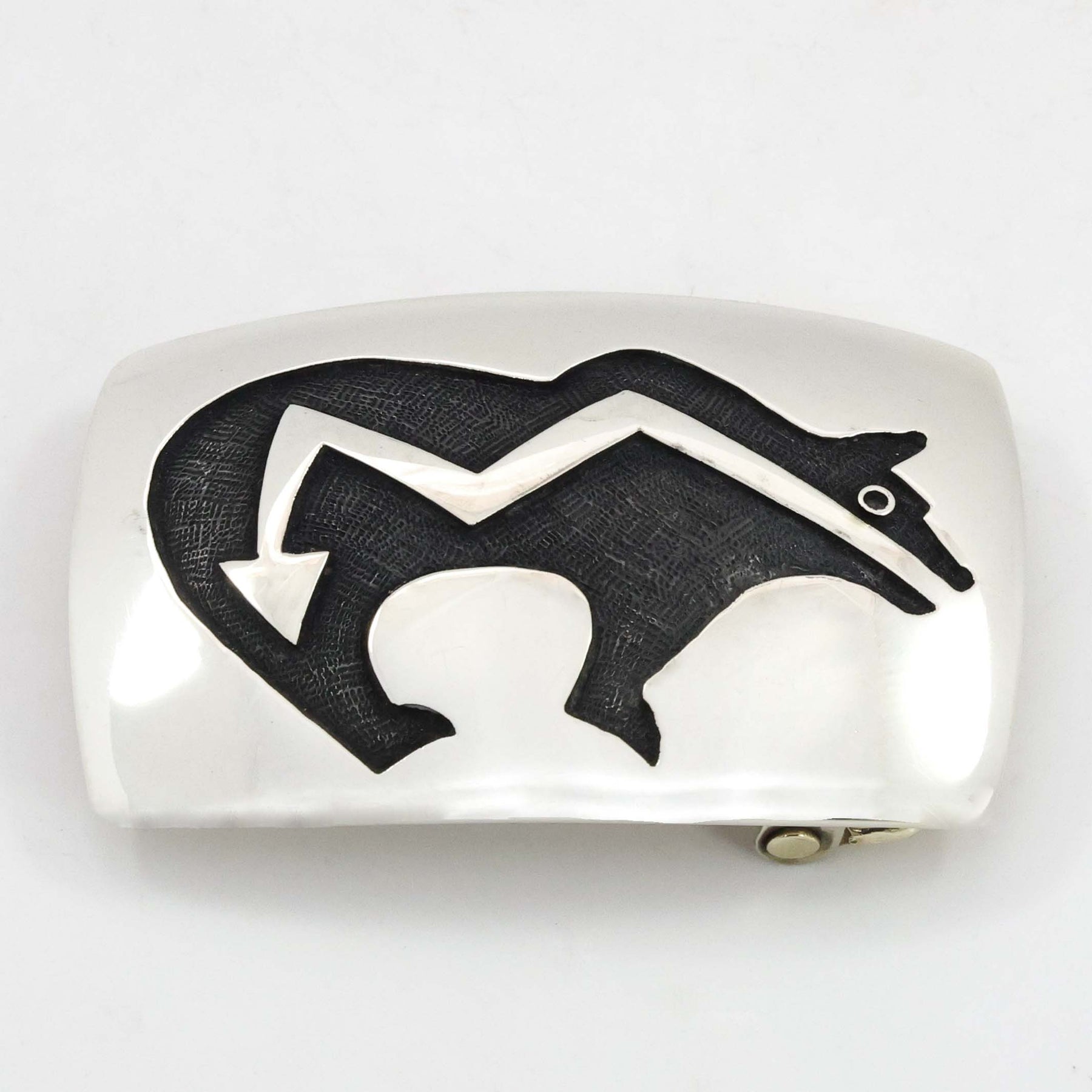 Sterling Silver Western Style Belt Buckle Featuring a Hopi Overlaid Bear with a Heartline.