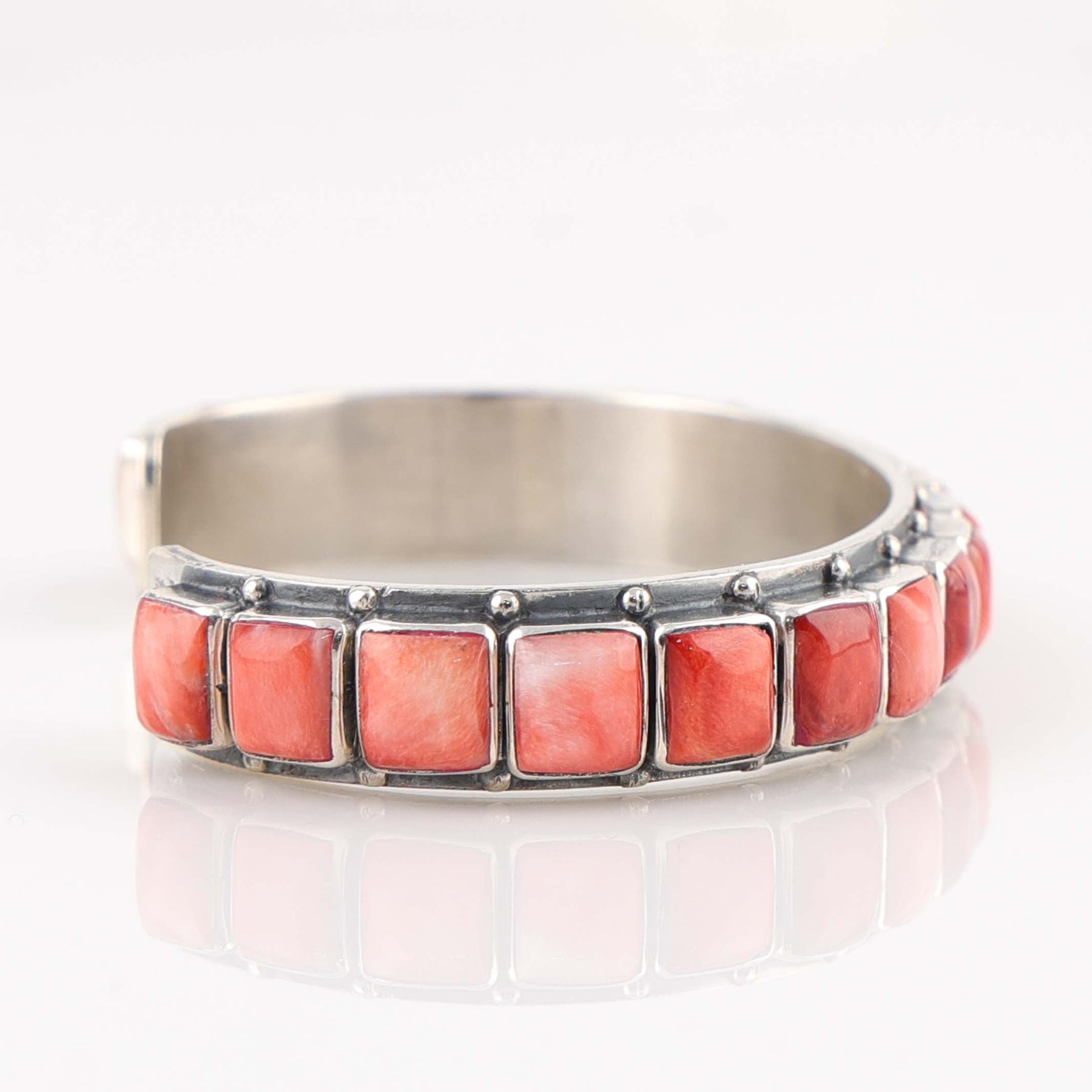 Sterling Silver Cuff Bracelet set with a Row of Spiny Oyster Shell.
