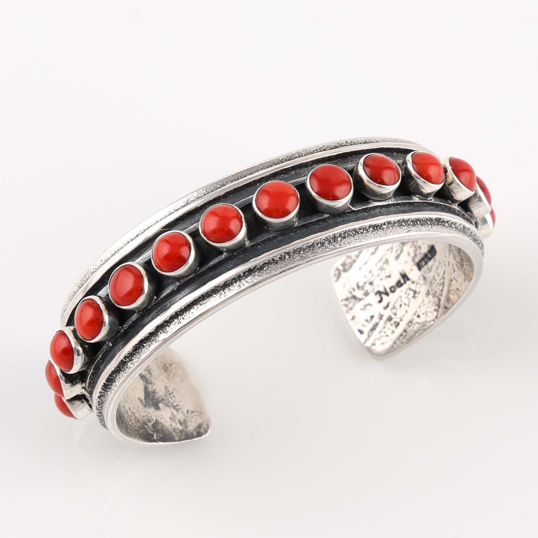 Sterling Silver Tufa Cast Bracelet set with Mediterranean Coral.