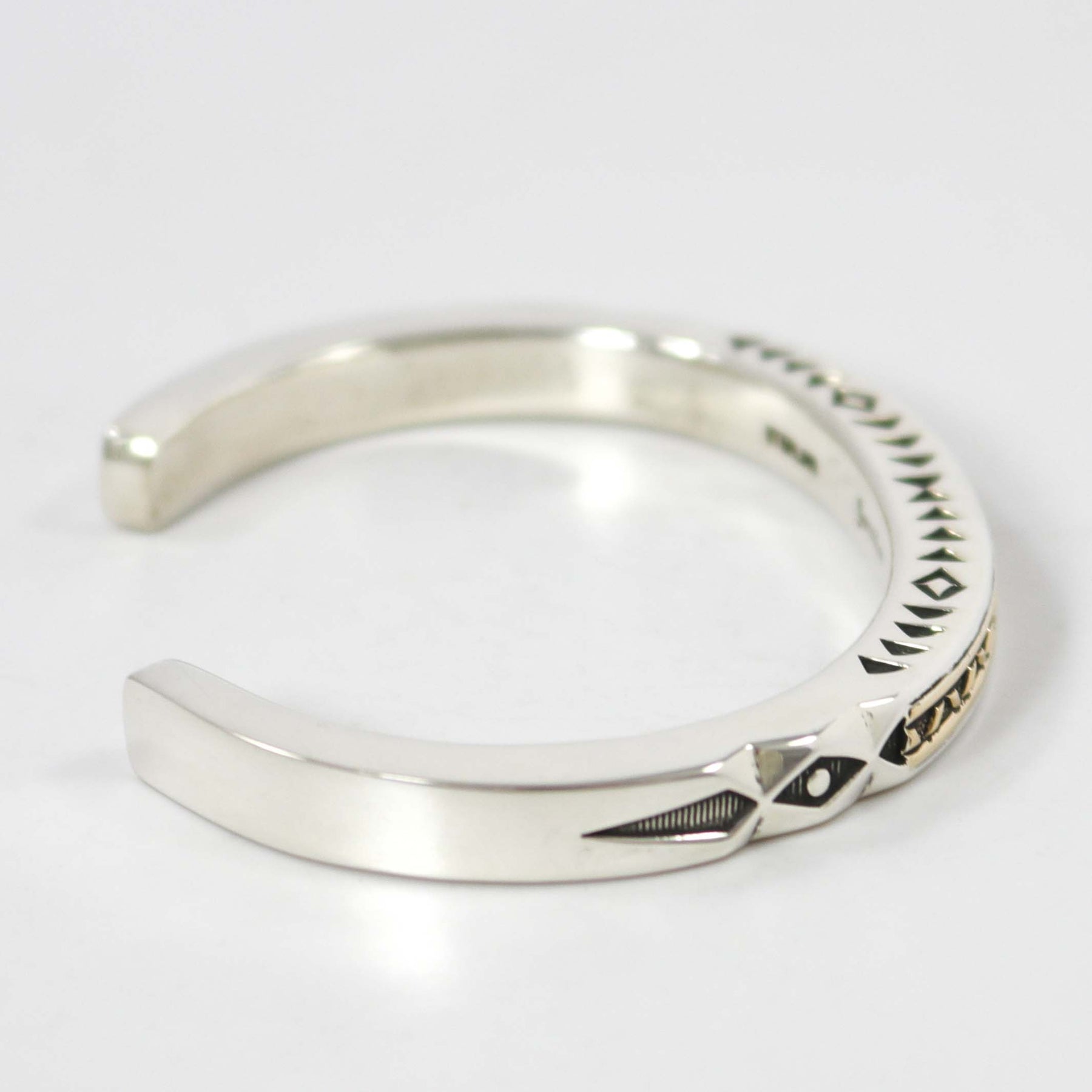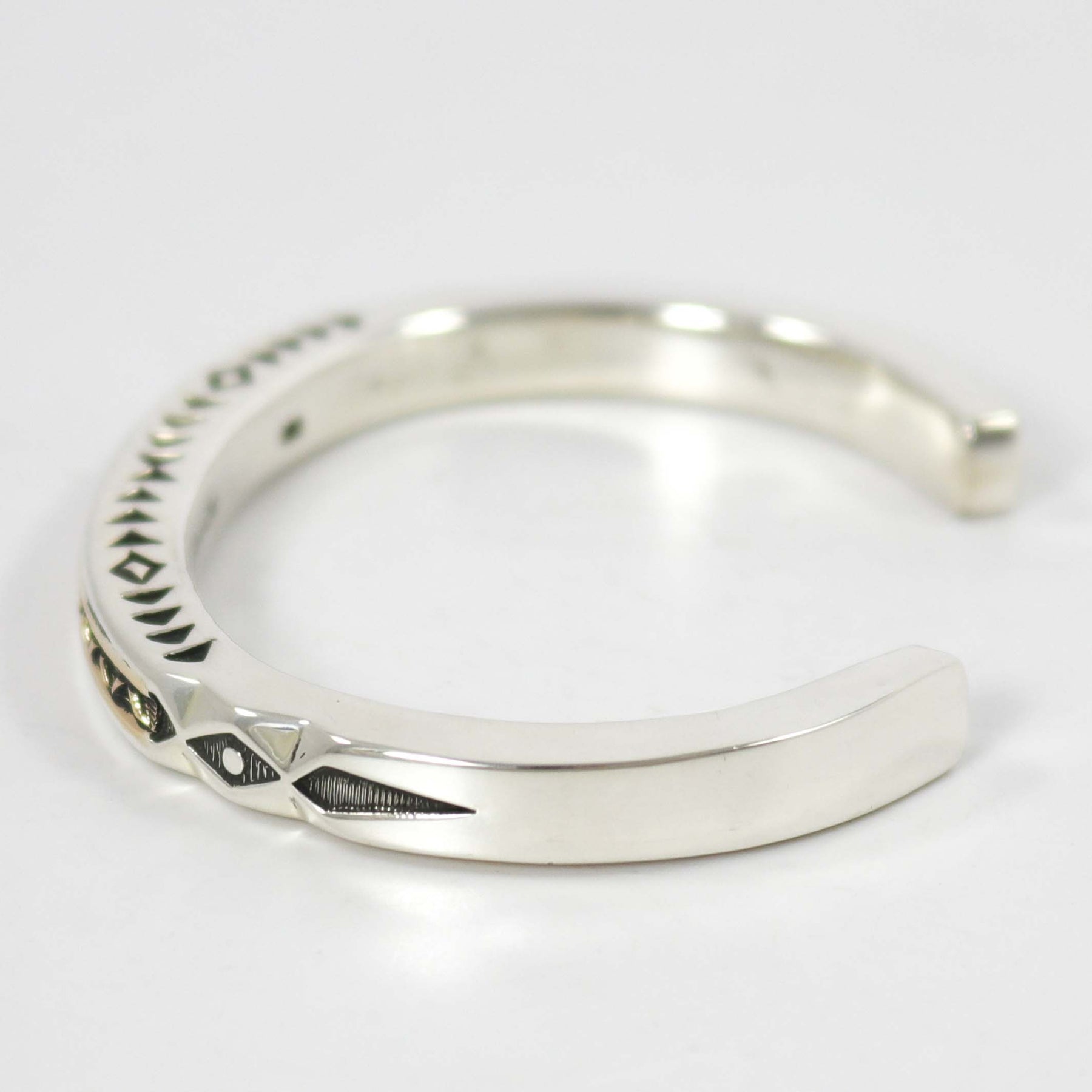 Heavy Gauge Sterling Silver and 14k Gold Square Wire Cuff Bracelet with Hand Stamped and Hand Filed Designs by Award Winning Navajo Silversmith, Jennifer Curtis.
