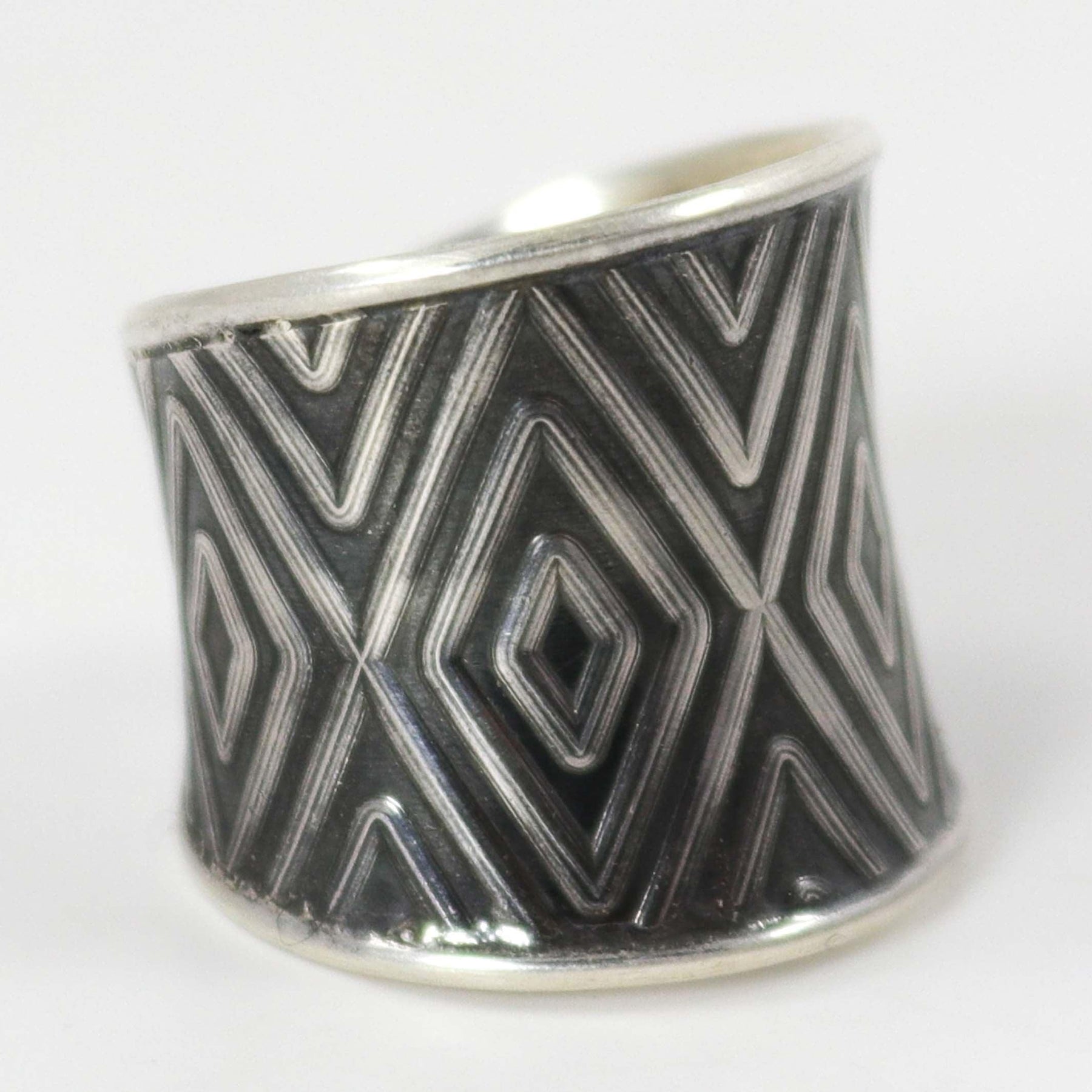 Sterling Silver Saddle Ring with a Rolled Texture Design.