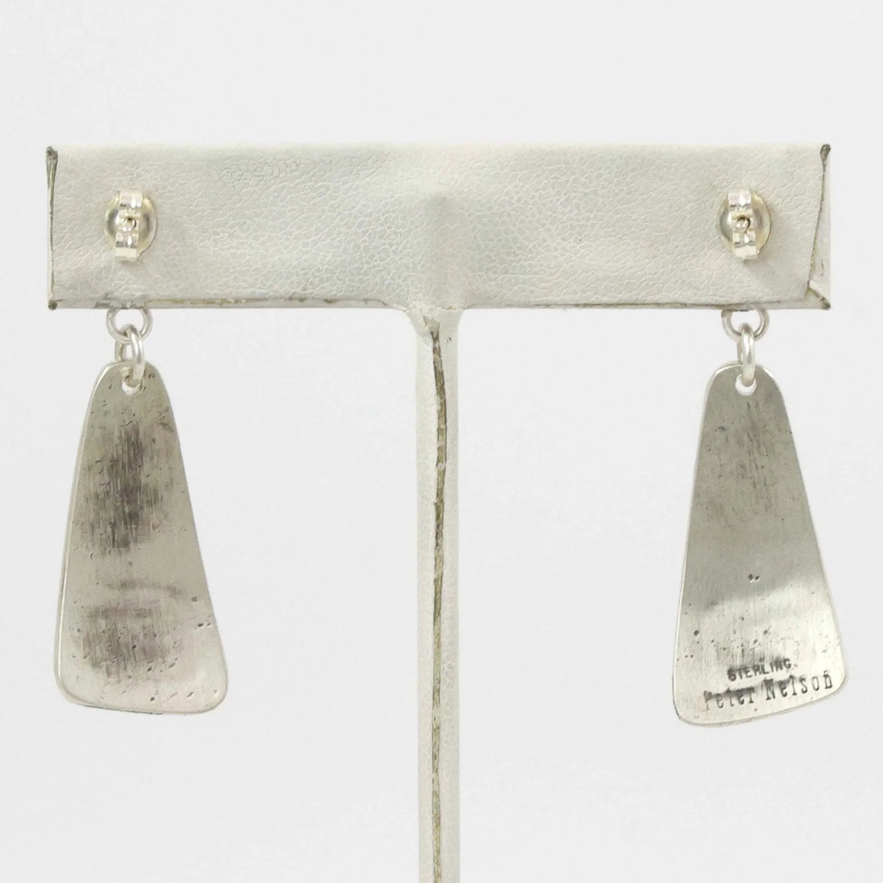 Sterling Silver Post Button with Dangle Earrings with Navajo Overlaid Designs and set with Natural Sleeping Beauty Turquoise from Arizona.