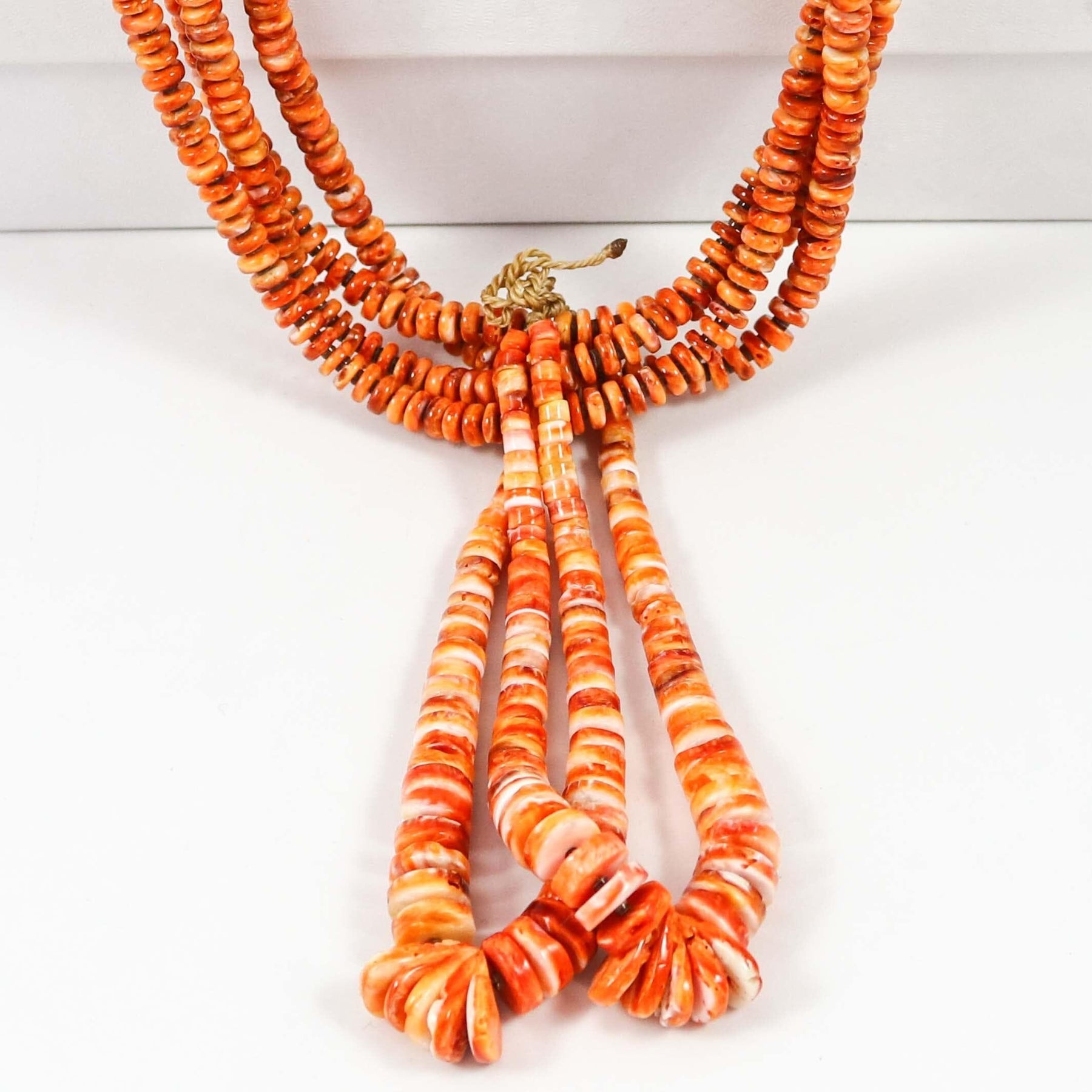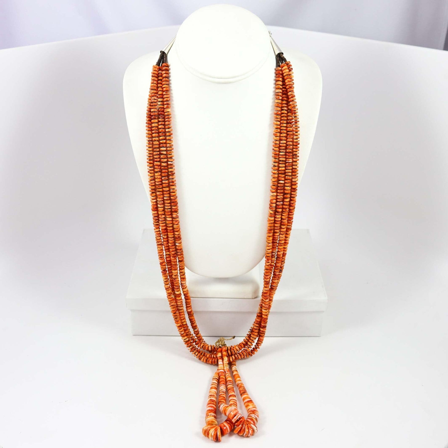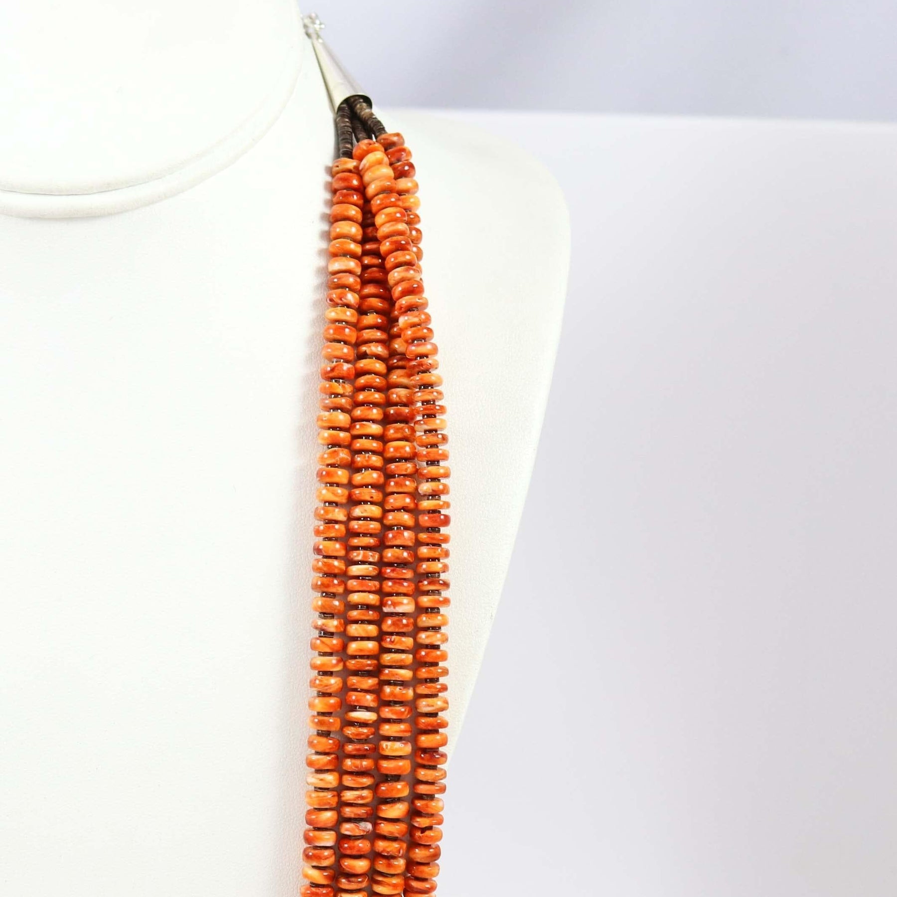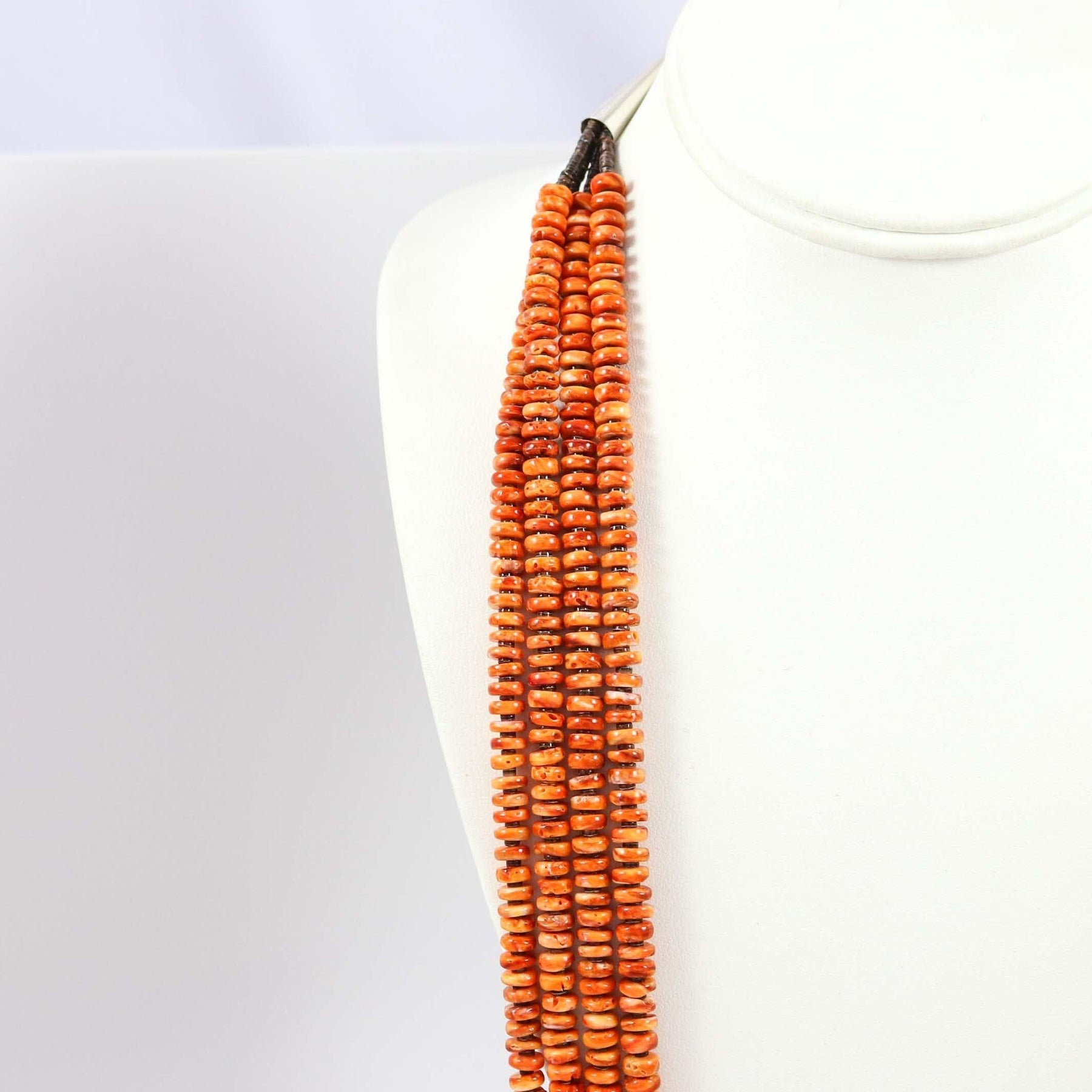 Four Strand Jacla Necklace with Hand Rolled Spiny Oyster Shell Beads with Pen Shell Spacers and Matching Spiny Oyster Shell Jaclas.