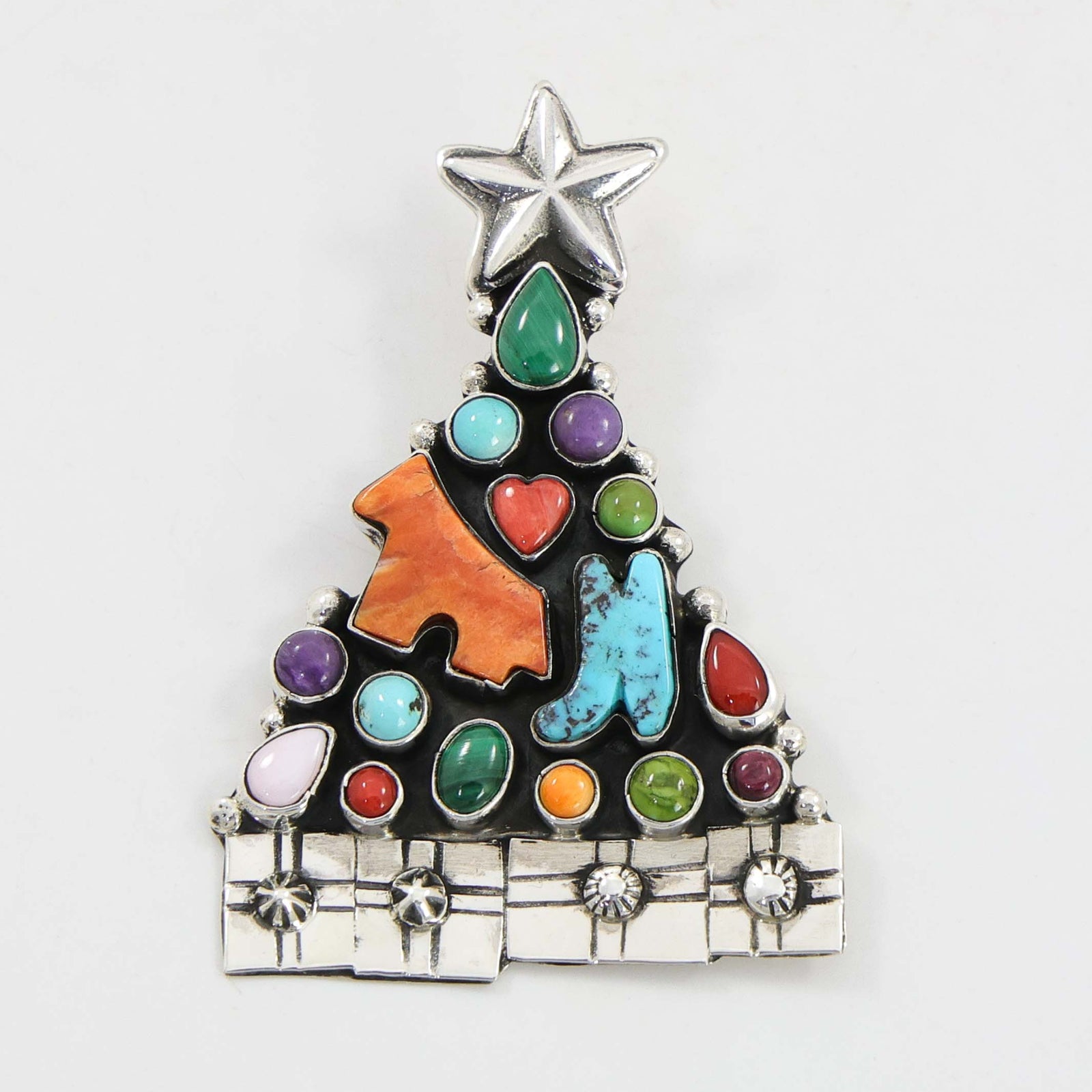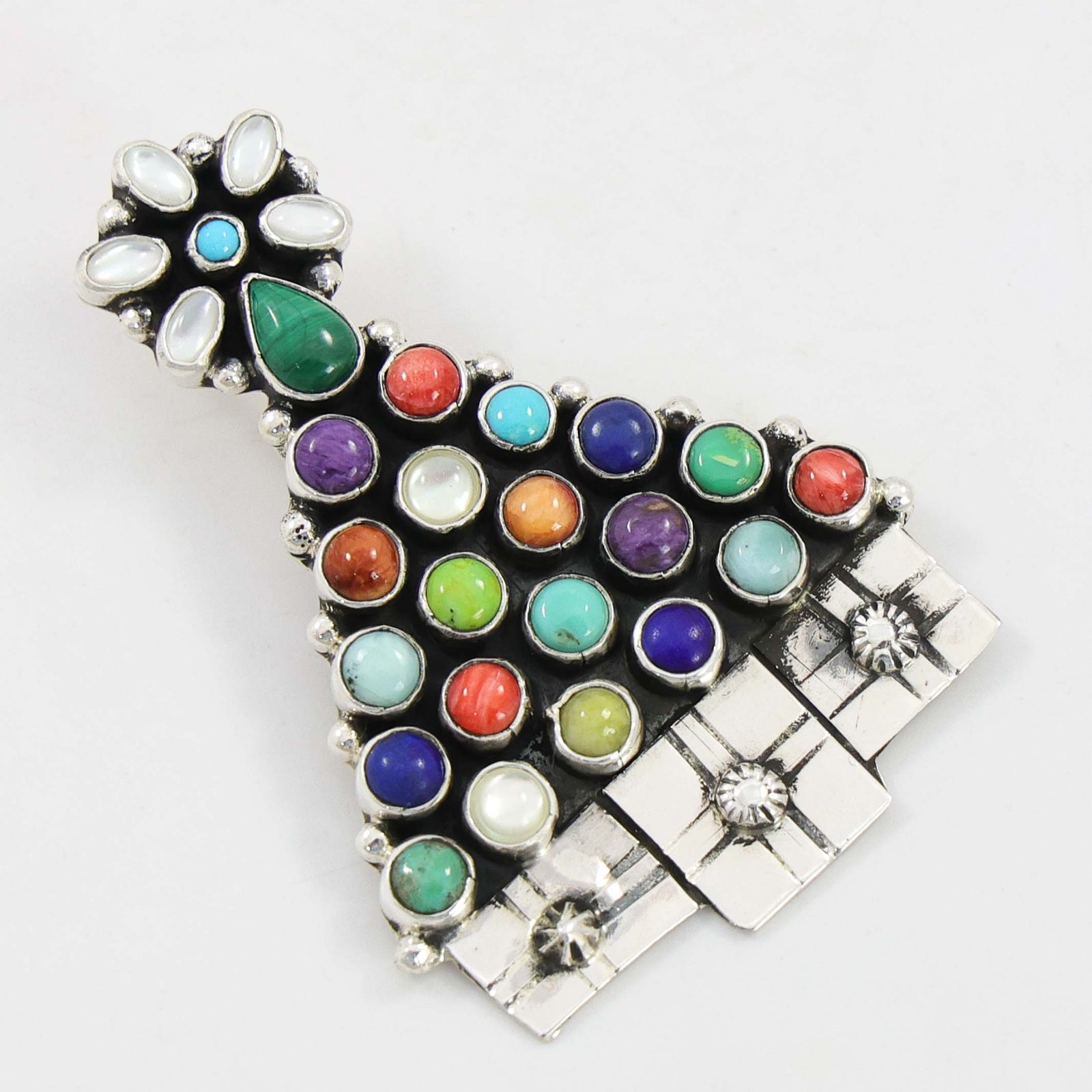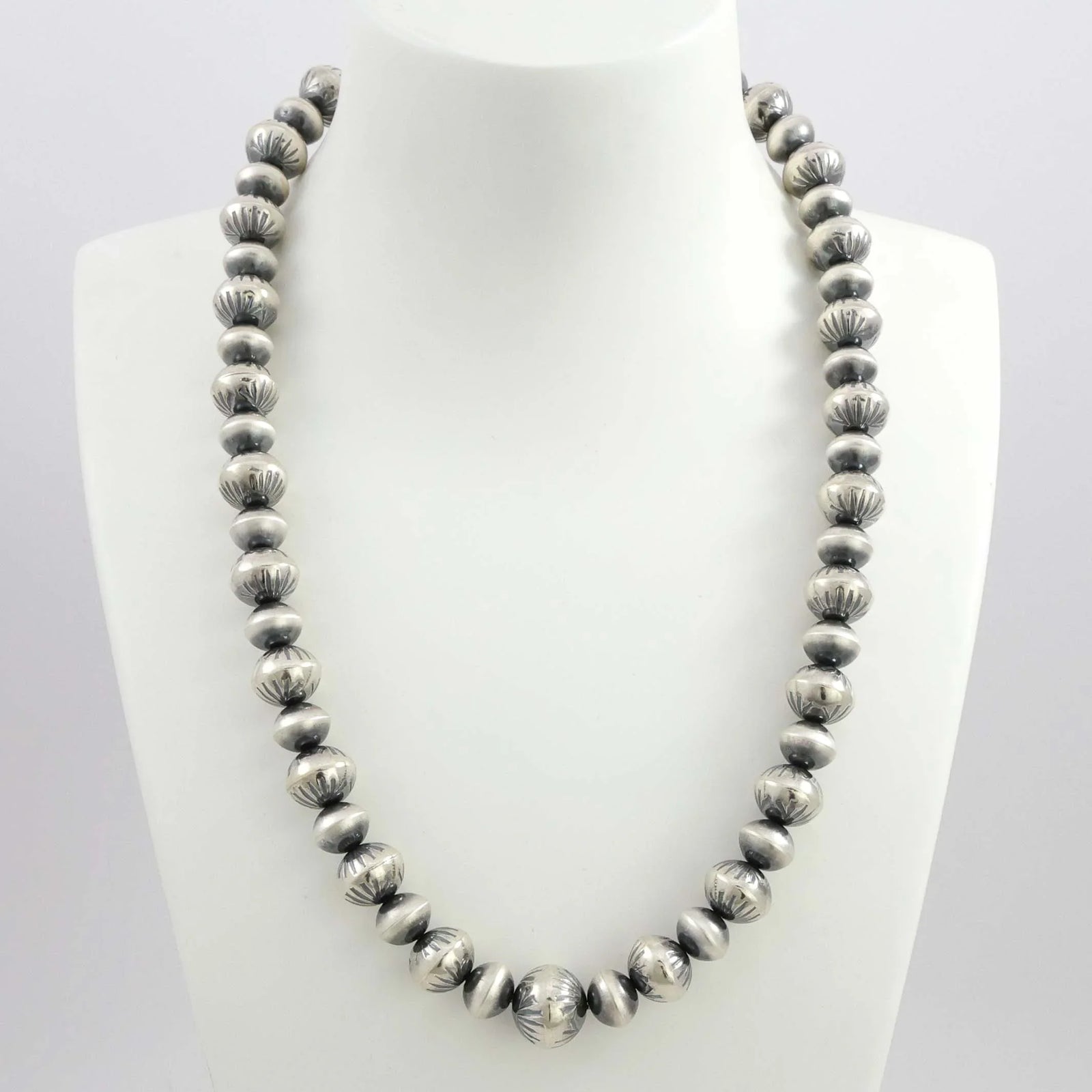 The Navajo (Diné) Nation covers over 27,000 square miles in Arizona, New Mexico, and Utah. It is the second largest Indigenous tribe in the United States with over 300,000 tribal members. The Diné have been rooted in the Southwest for over a thousand years. They are an Athabascan people, having ancient ancestors who originally migrated over the Bering Strait from Asia. Silversmithing and rug weaving are extremely important traditions to Navajo culture. The Navajos were the first tribe in the Southwest to learn silversmithing techniques in the late 1800s. Squash Blossom Necklaces and Concha Belts are the most iconic forms Navajo silversmithing. Navajo artistry blends both traditional techniques and modern influences, showcasing the unique heritage and creativity of the Diné.