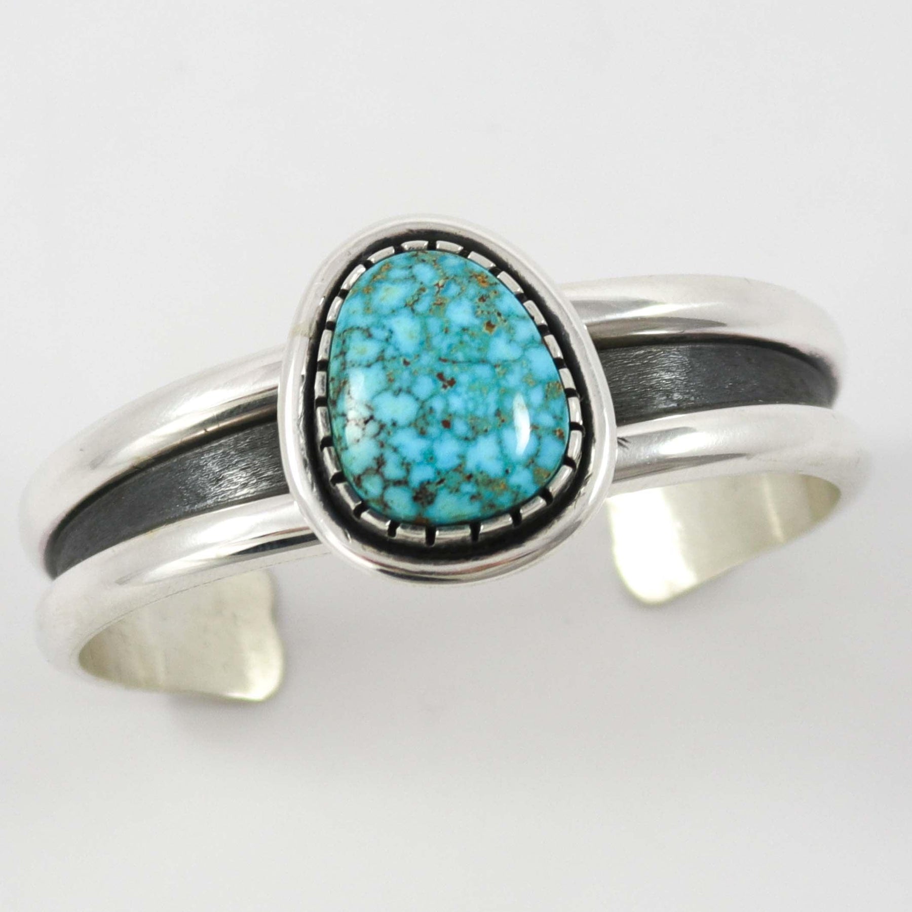 Sterling Silver Cuff Bracelet with Natural Kingman Turquoise from Arizona.