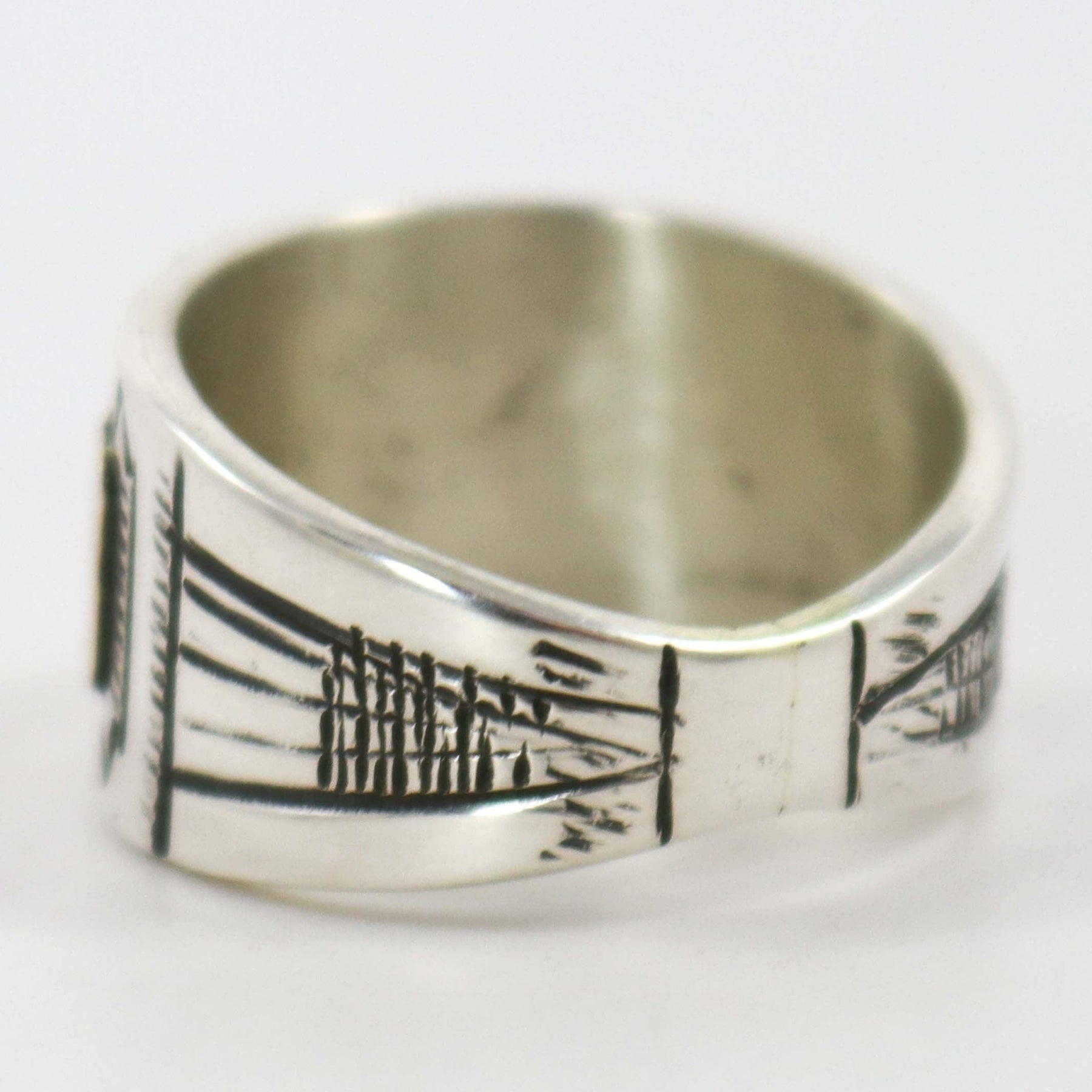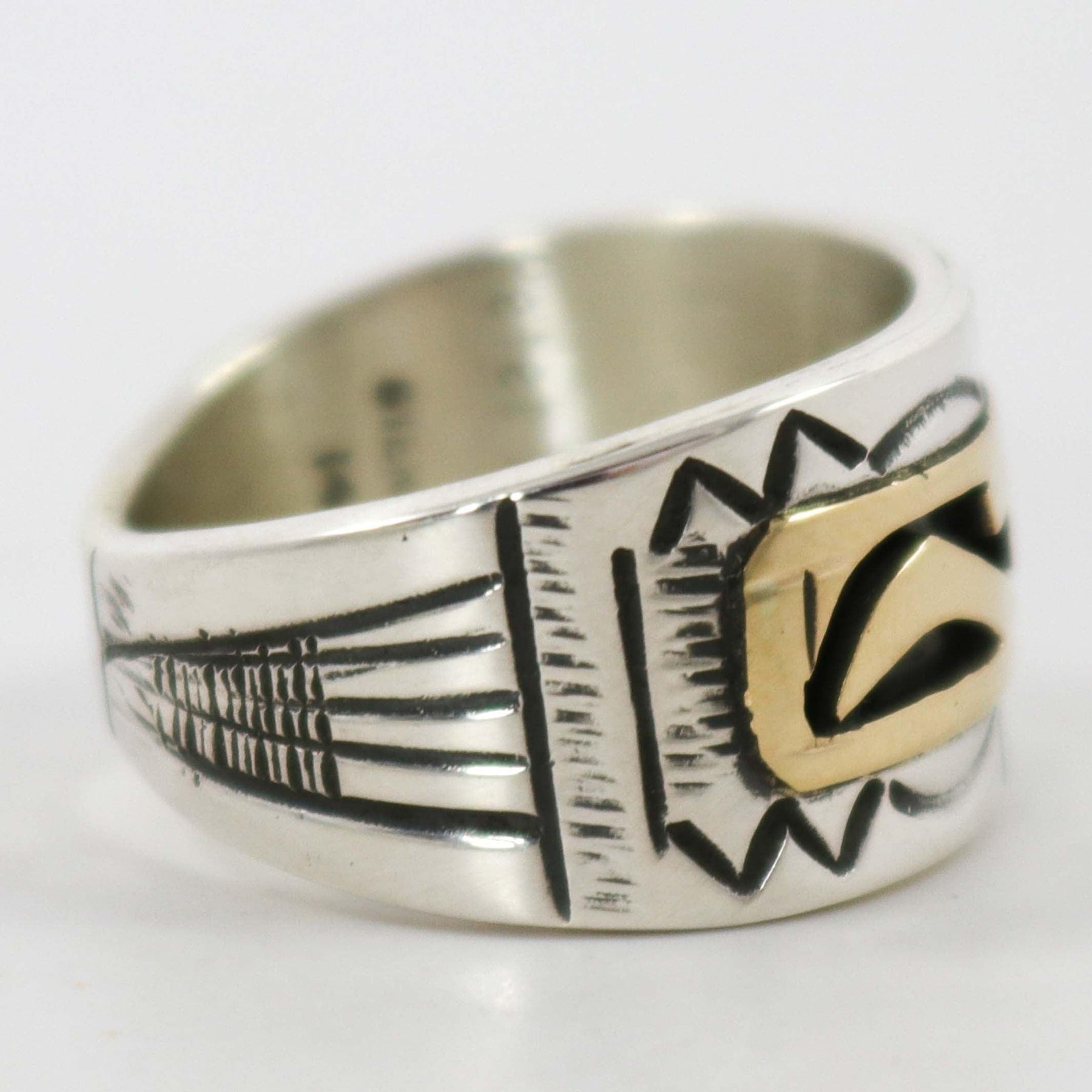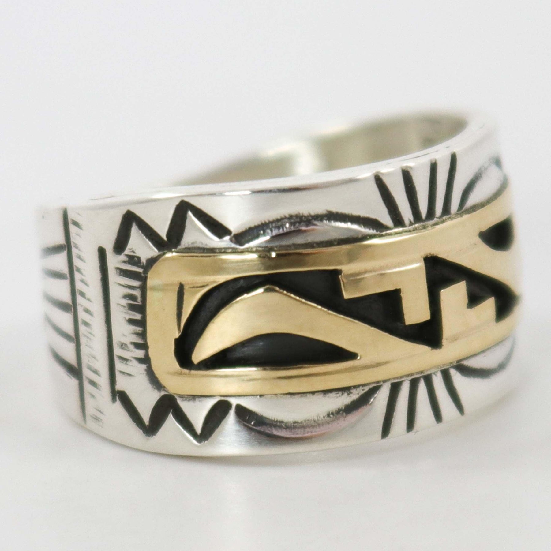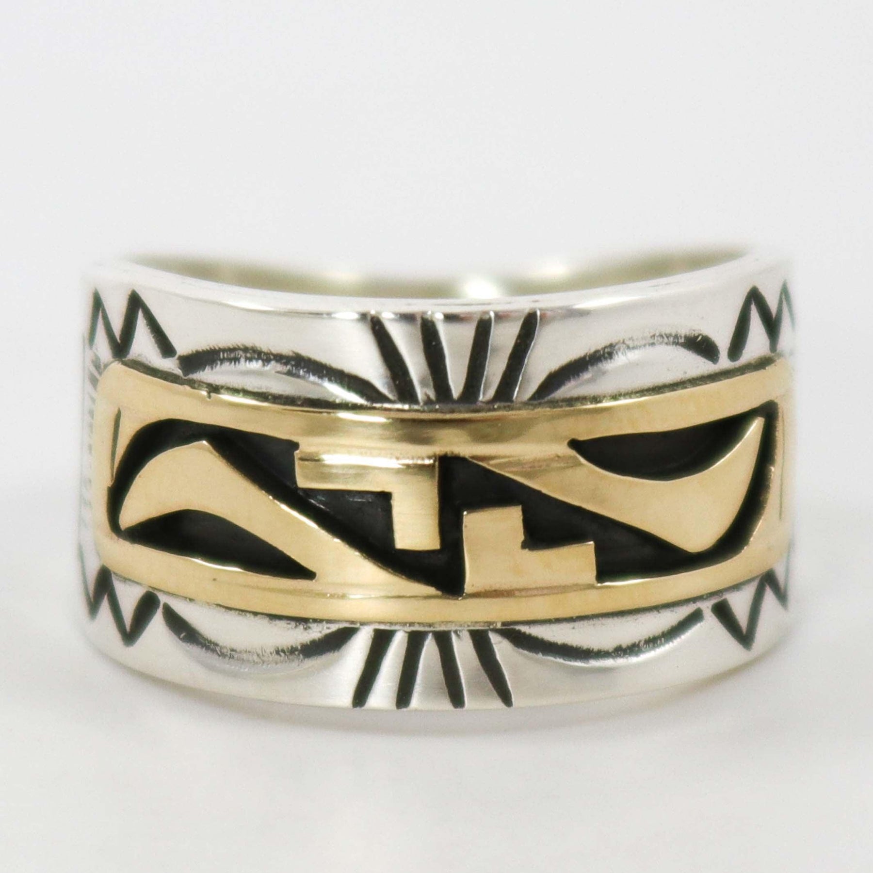 Sterling Silver Ring with 14k Gold Overlay Designs and Hand-Stamped Designs.