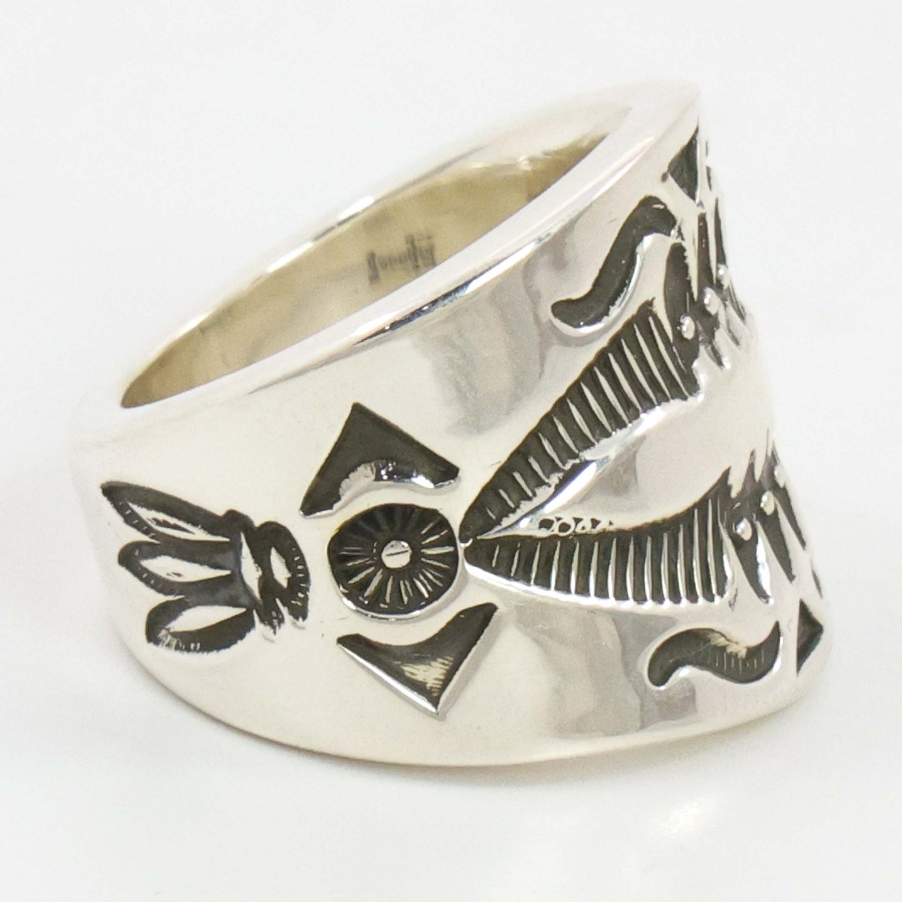 Heavy Gauge Sterling Silver Ring with Intricate Hand Stamped Designs.