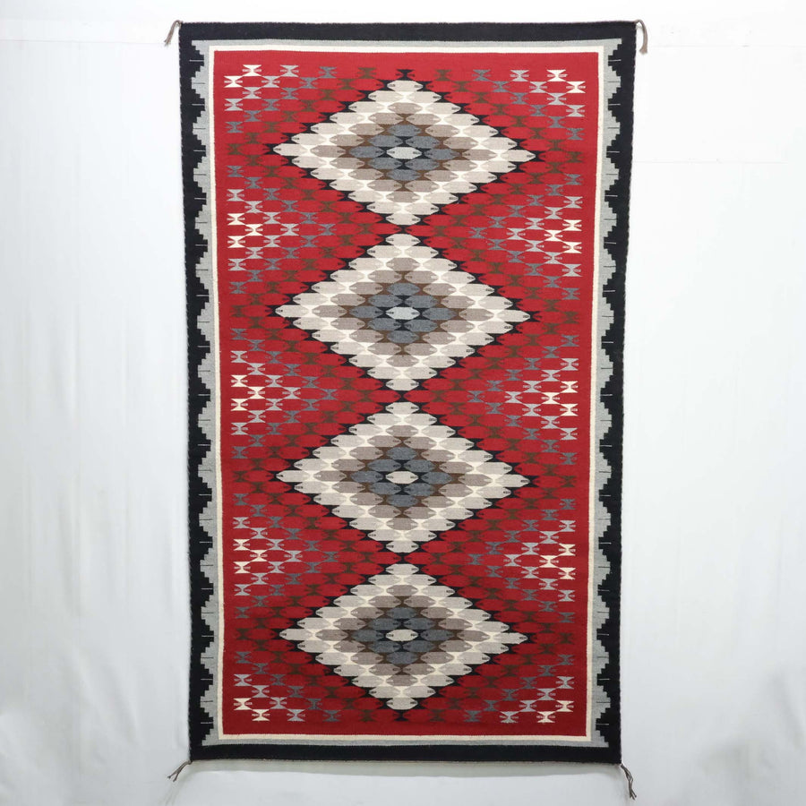 1990s Handwoven Navajo Weaving in the Ganado Regional Style. This weaving has a slight A and B side but otherwise in excellent overall condition.