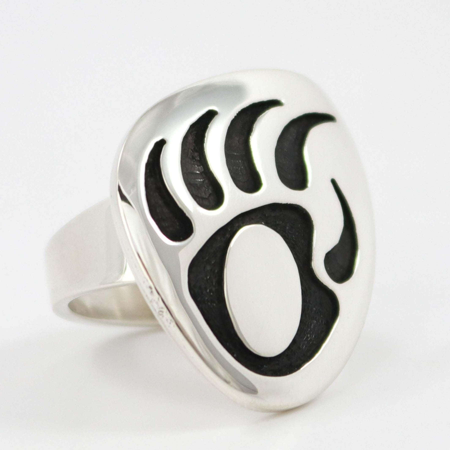 Sterling Silver Ring with Hopi Overlaid Bear Claw Design.